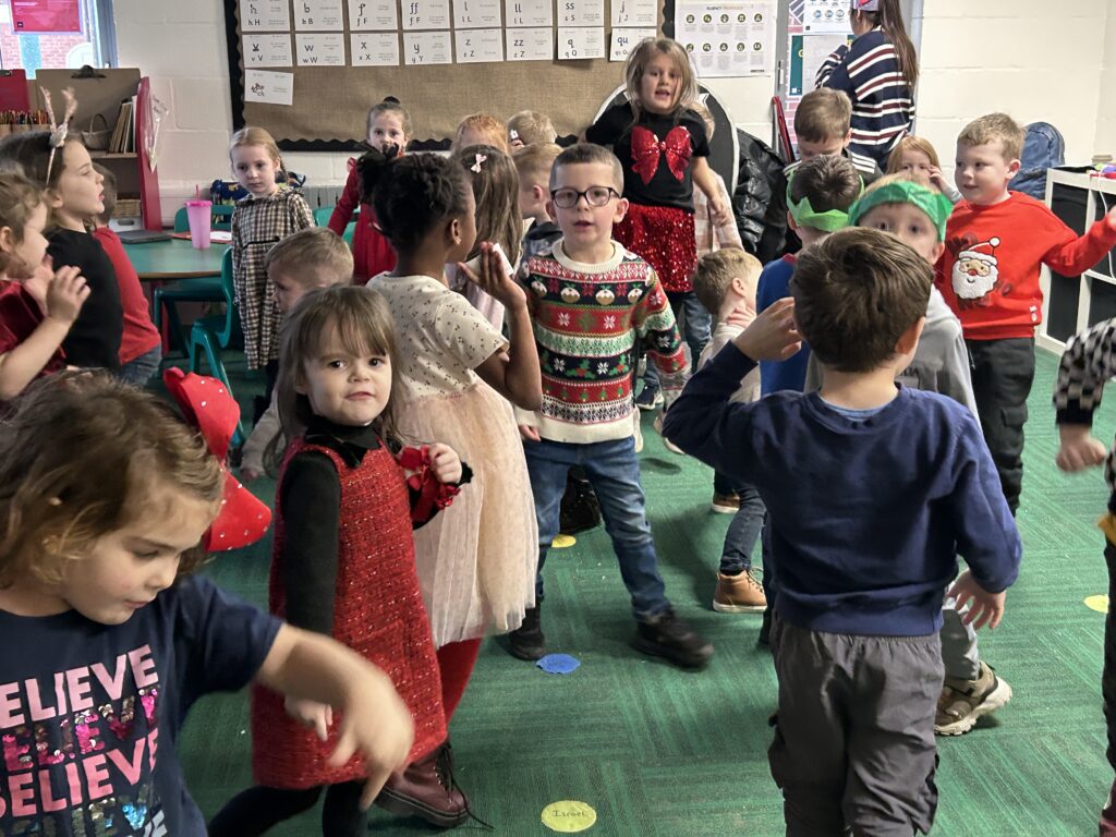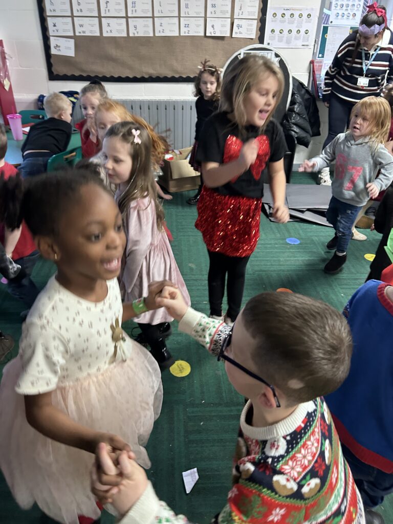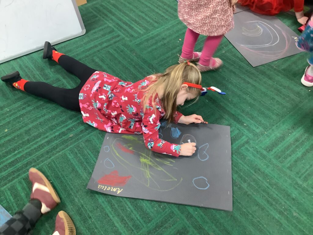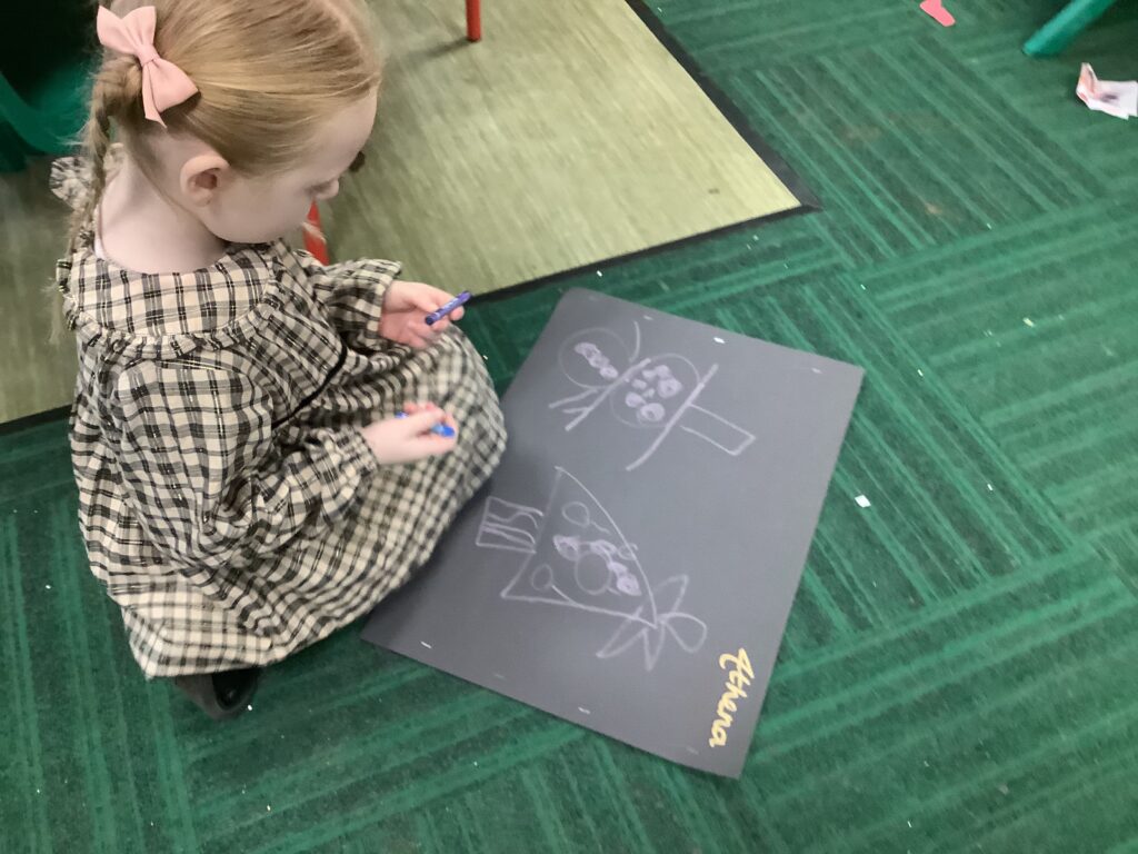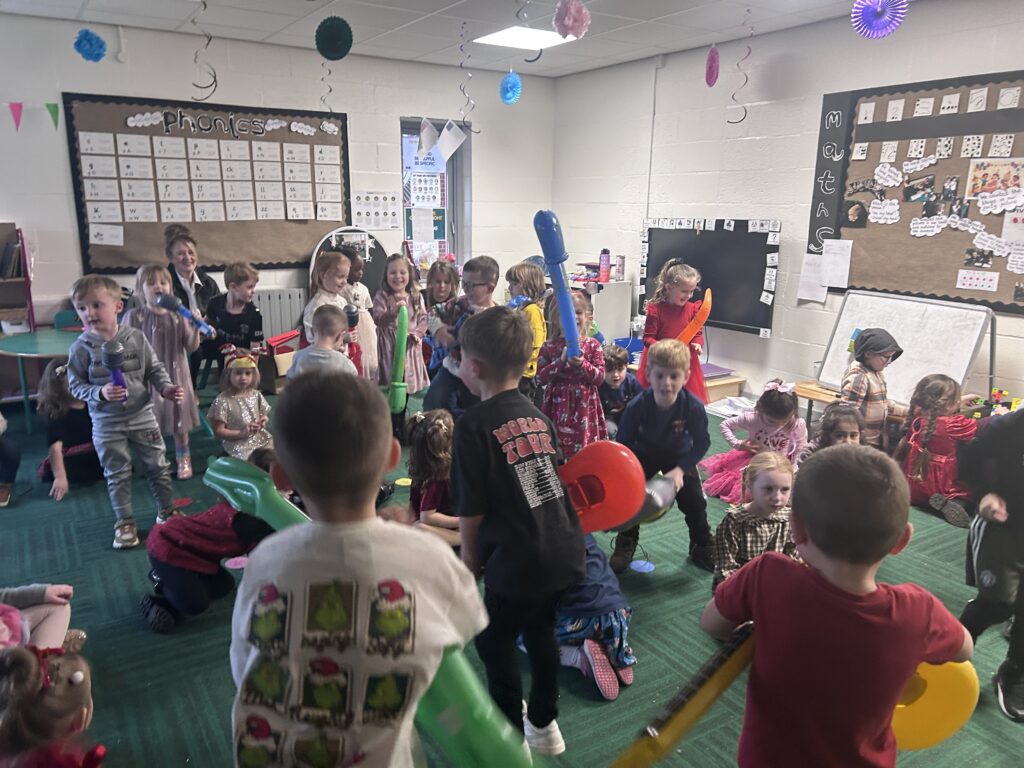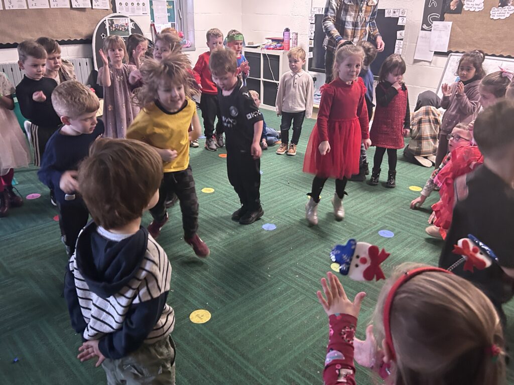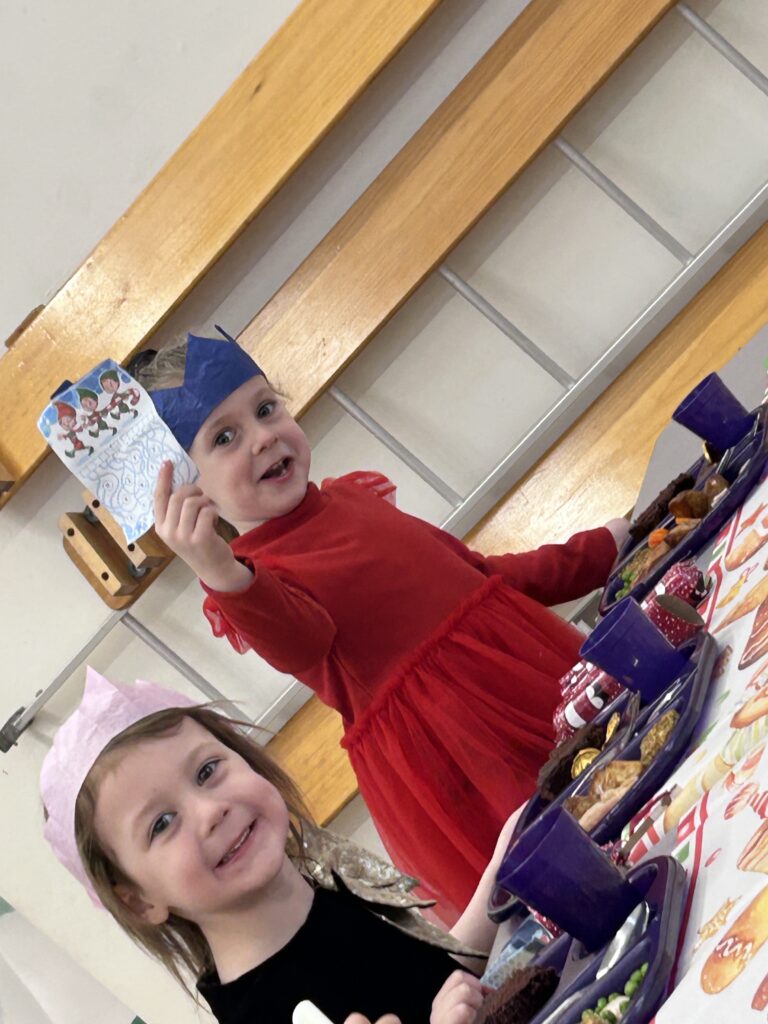 The children in Reception had a fantastic Christmas party day! We began the morning making delicious chocolate crispy Christmas puddings, followed by decorating our very own party bags with festive drawings – they looked amazing.