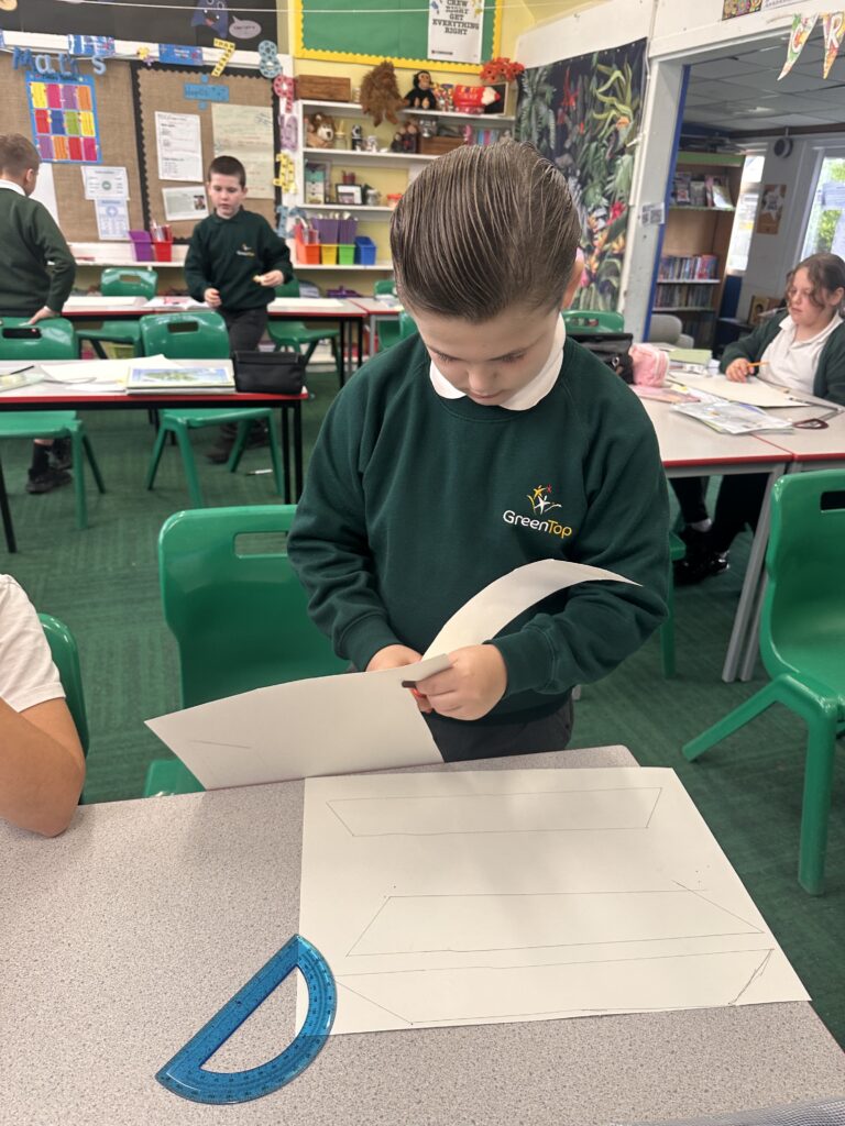 Today, the children followed specific guidelines to complete their second prototype. They used their reflection and critique from yesterdays first draft to make adjustments. A huge shoutout to Imogen for her second prototype. She followed the guidelines ensuring that her measurements were accurate and could confidently use her protractor to measure 45degree angles.