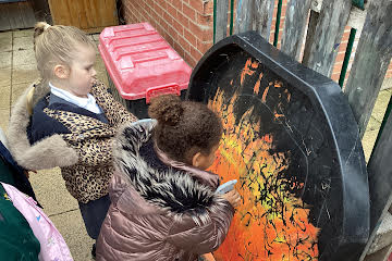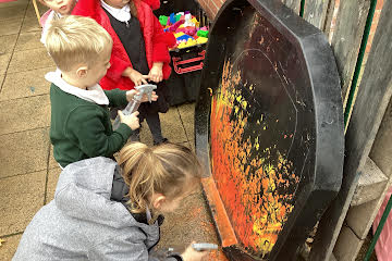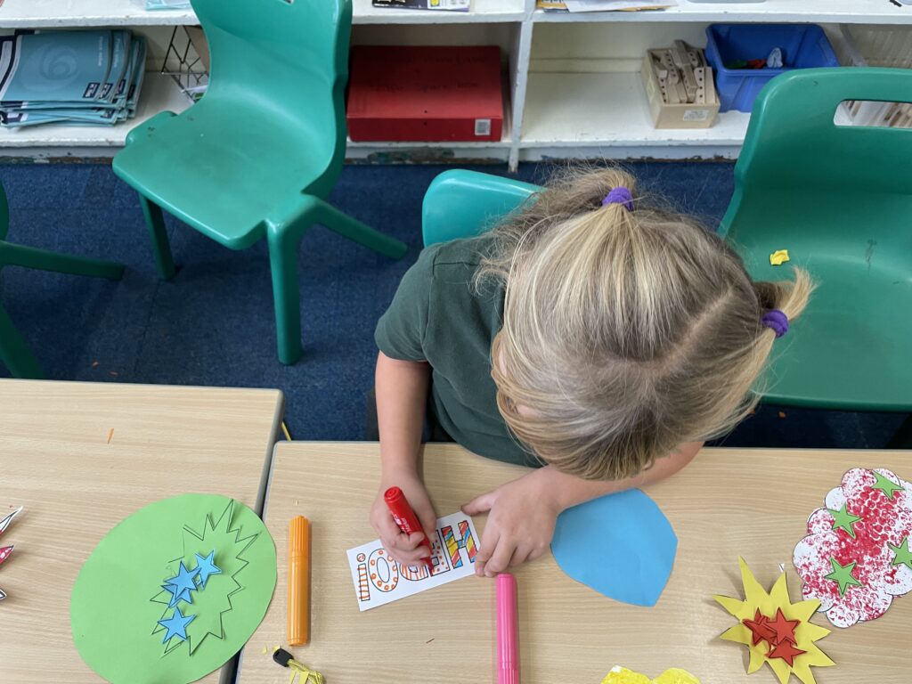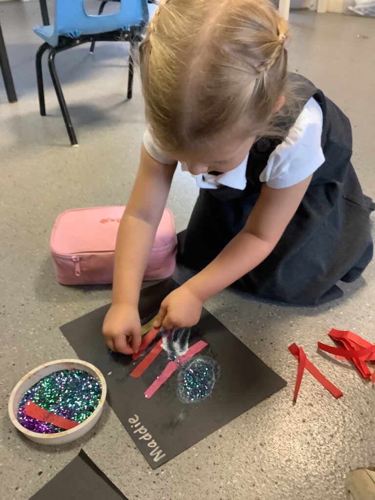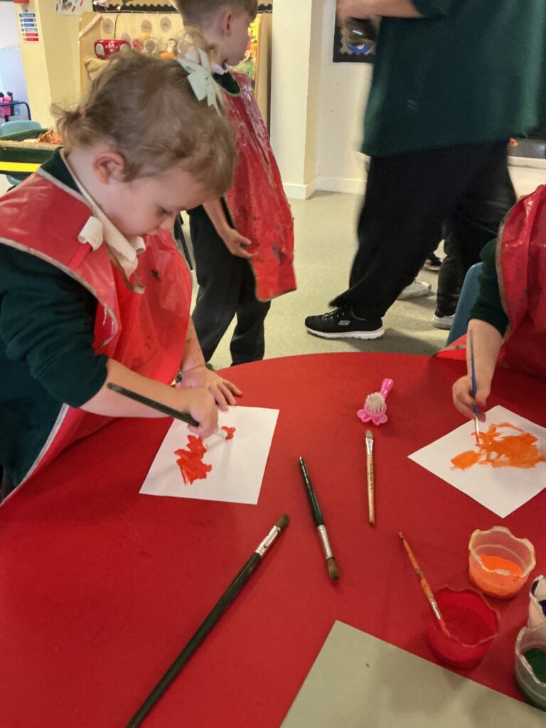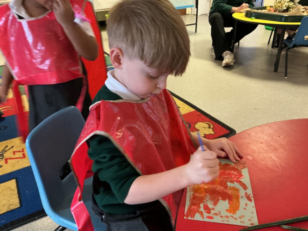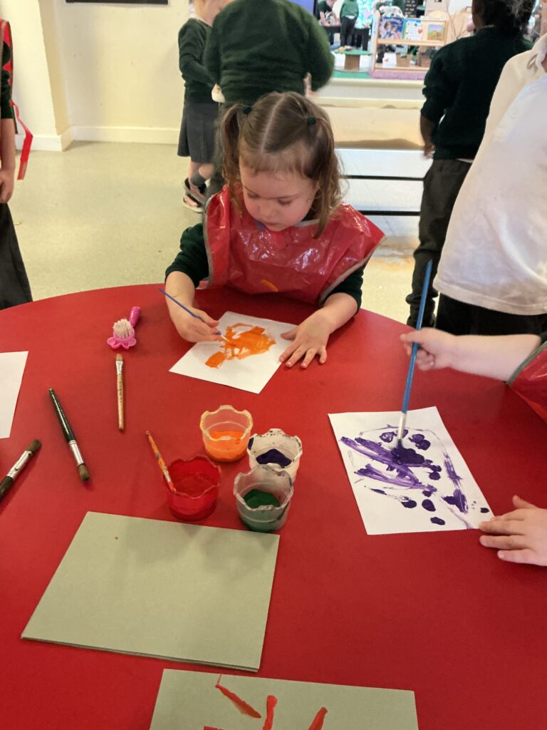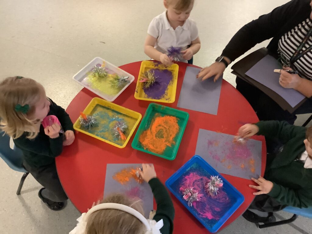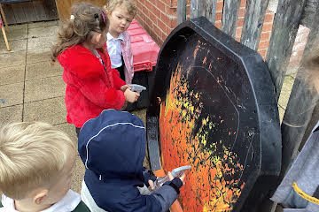 Firework crafts underway here in Nursery. Lots of wonderful conversations about colour, sparkles, dark and light and onomatopoeia words such as ‘bang, pop, fix, shoot’. The children have also been looking like scientists and sketching like artists when creating observational drawings of the pumpkins.
