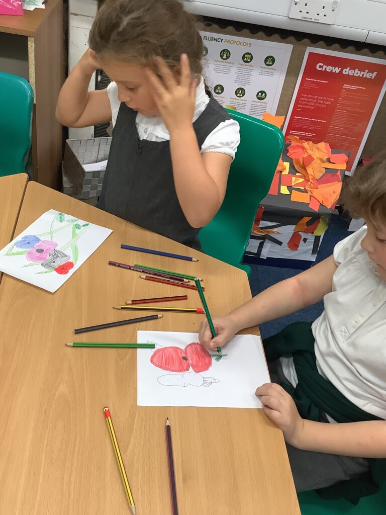 Today in club children have been sketching their own beautiful poppies ready in Remembrance Day.