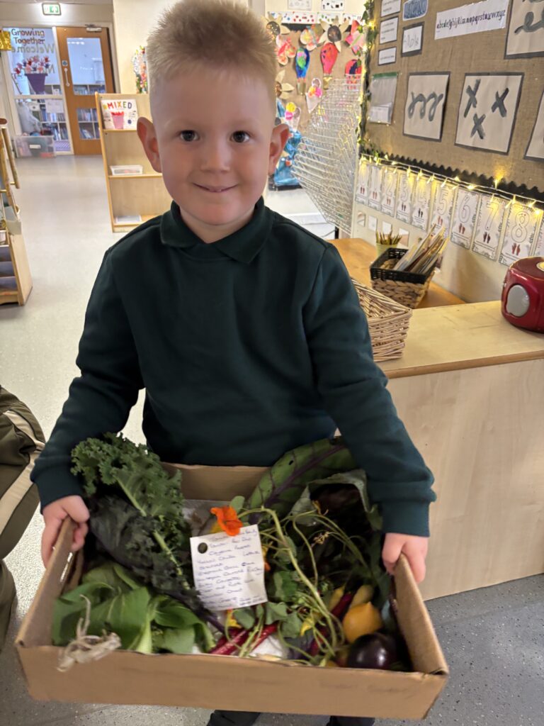 A big shout out Rowan who proudly brought in a big box of home grown produce from his Nanny’s garden.
