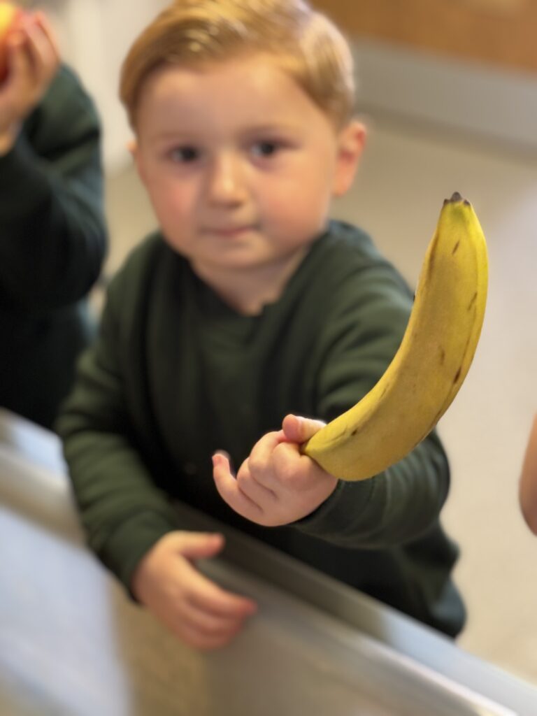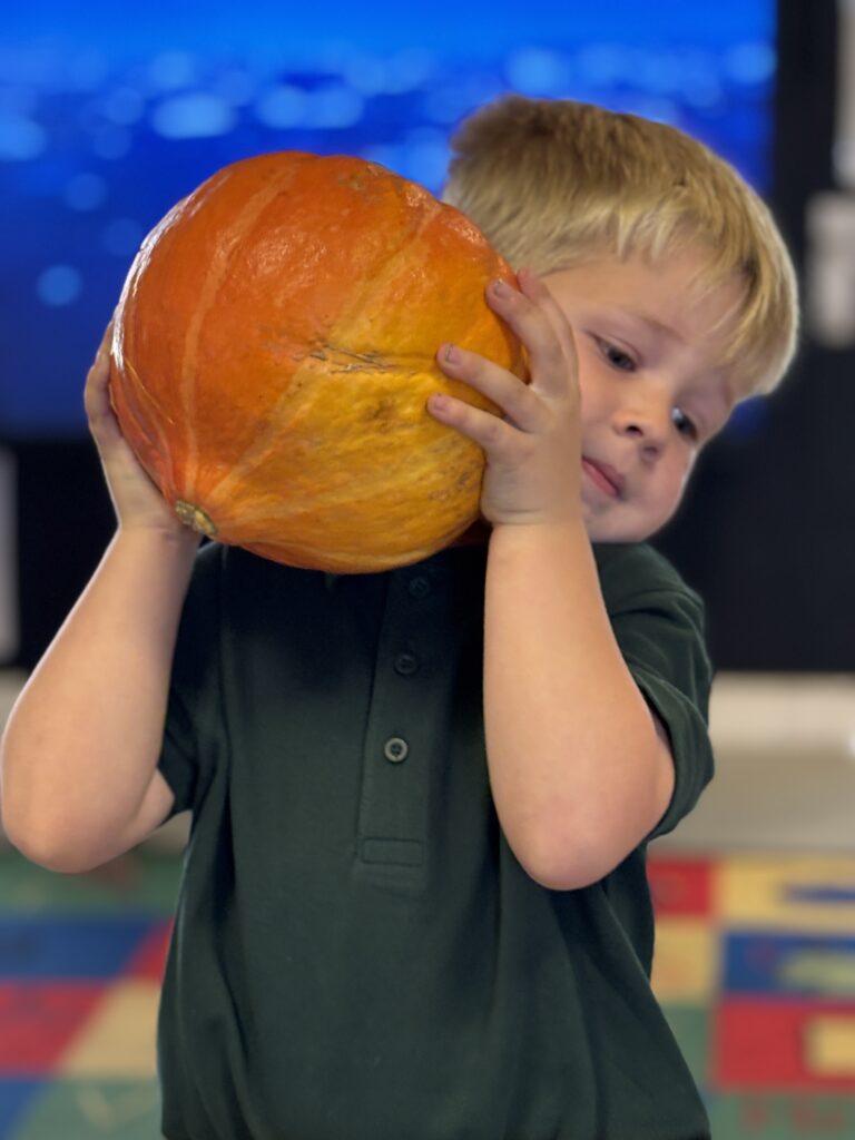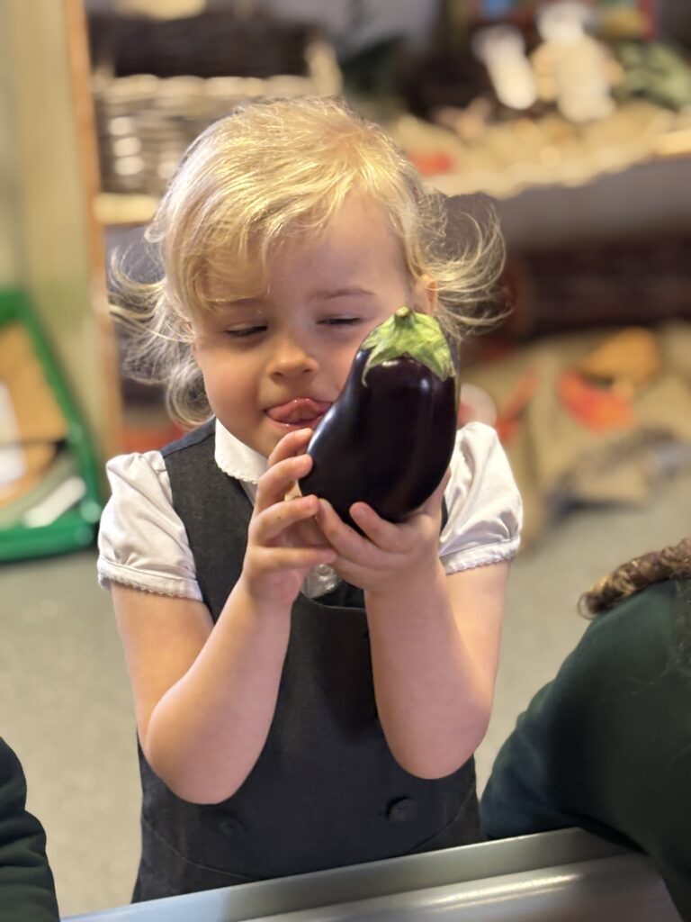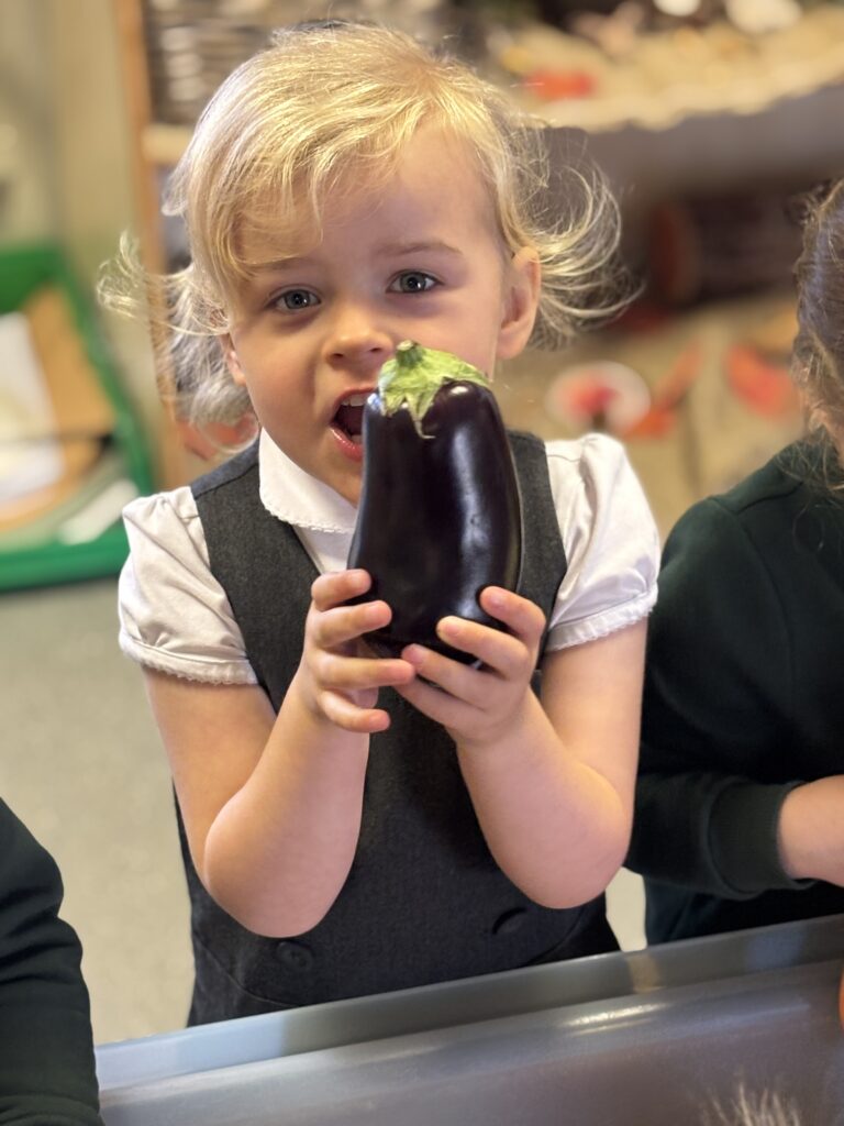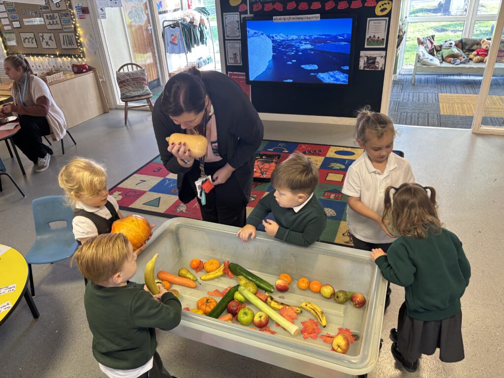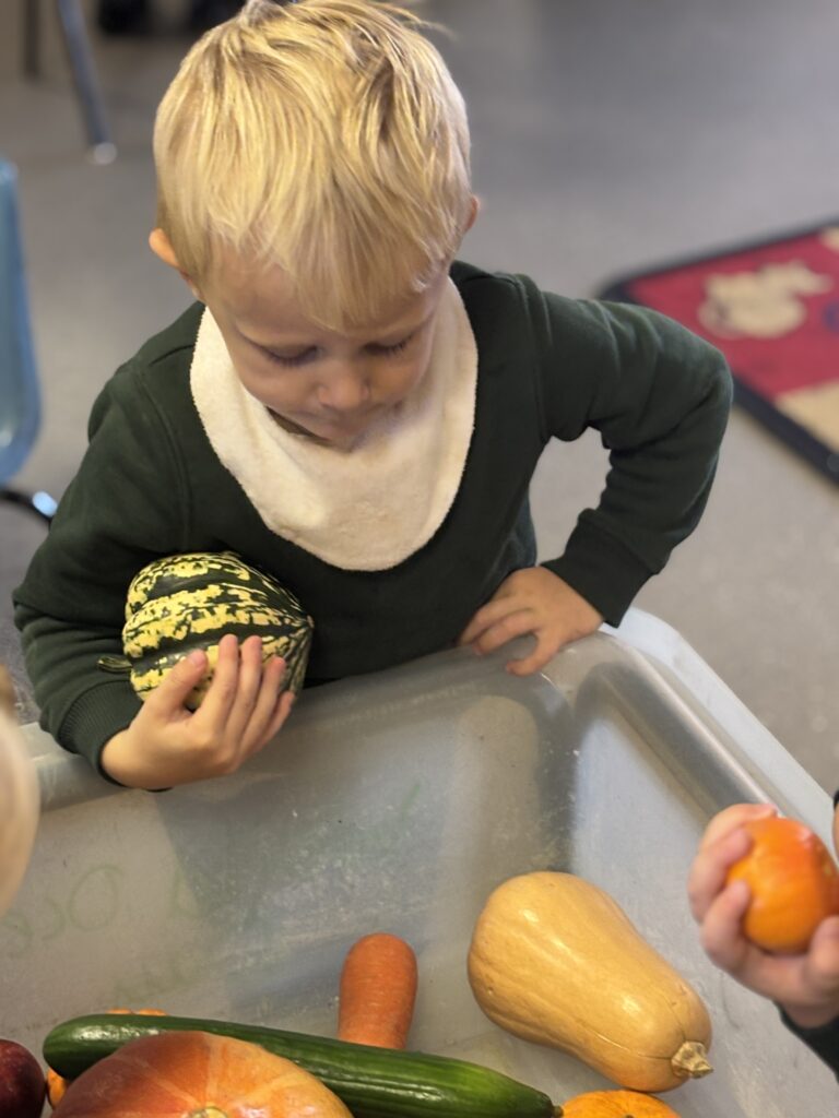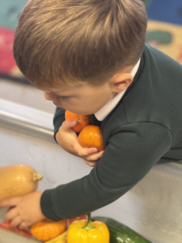 This week, the children have been looking at the harvest celebration and what it means. Thank you to all the parents, carers and children who brought in fruits and vegetables for us to explore using our senses in Nursery. The children have also been using their maths knowledge of size and weight to describe and compare the foods.