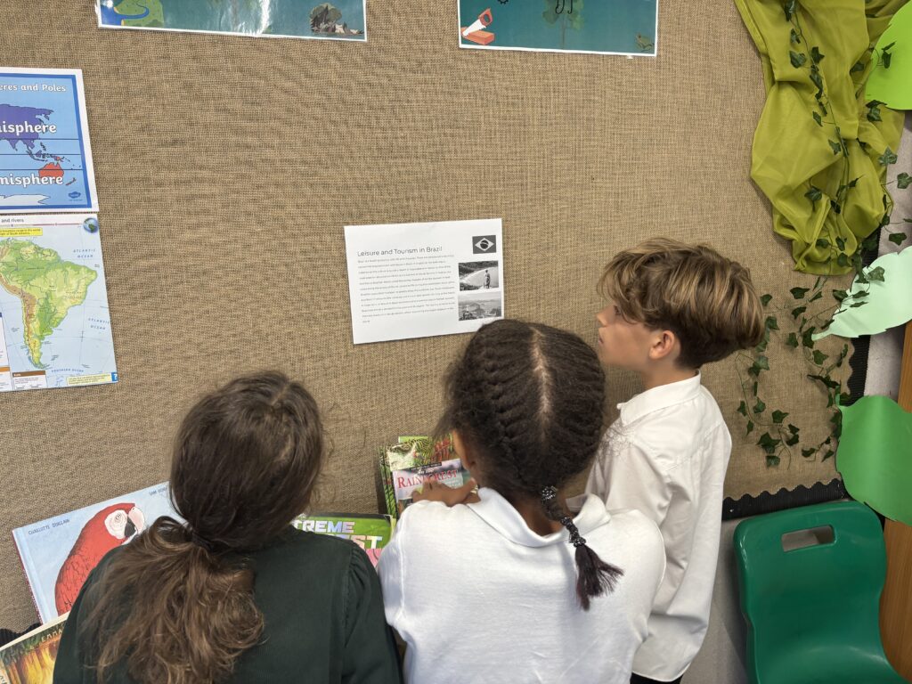 This week we are geographers as we explore how the physical characteristics of a location impact the human activity that takes place there. We have compared Brazil and the UK, focusing on farming, transport and leisure activities. I am really impressed with the craftmanship and quality shown in the children’s work.