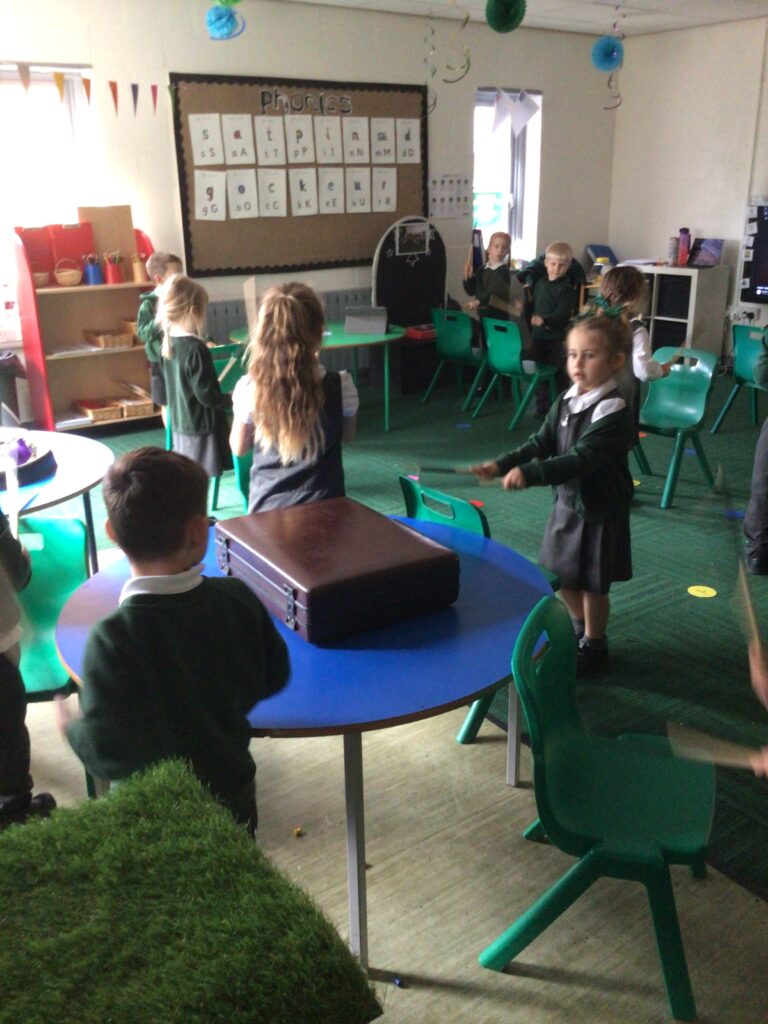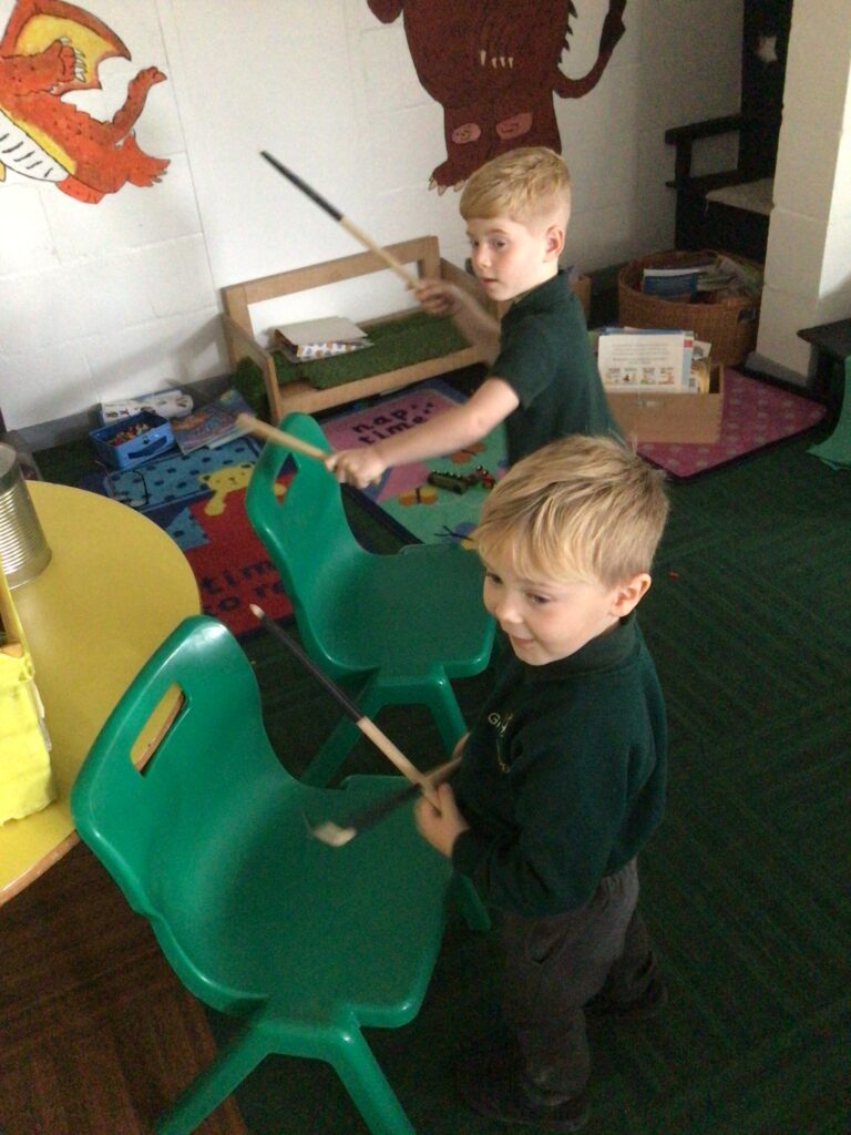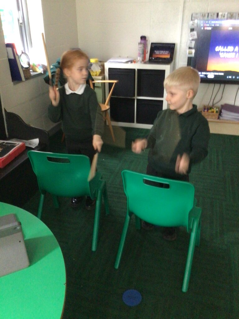 We were so inspired by Mr Pickles rock and drumming session last week that we thought we would have a try for ourselves in our classroom. It was super noisy but soooo much fun!