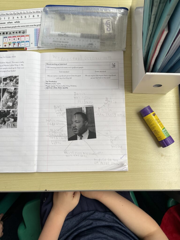 Over the past couple of Expedition lessons, Class 7 have been historians and researching Martin Luther King and the impact he had on other people’s lives. We worked together to find the key information and then wrote our very own fact file!