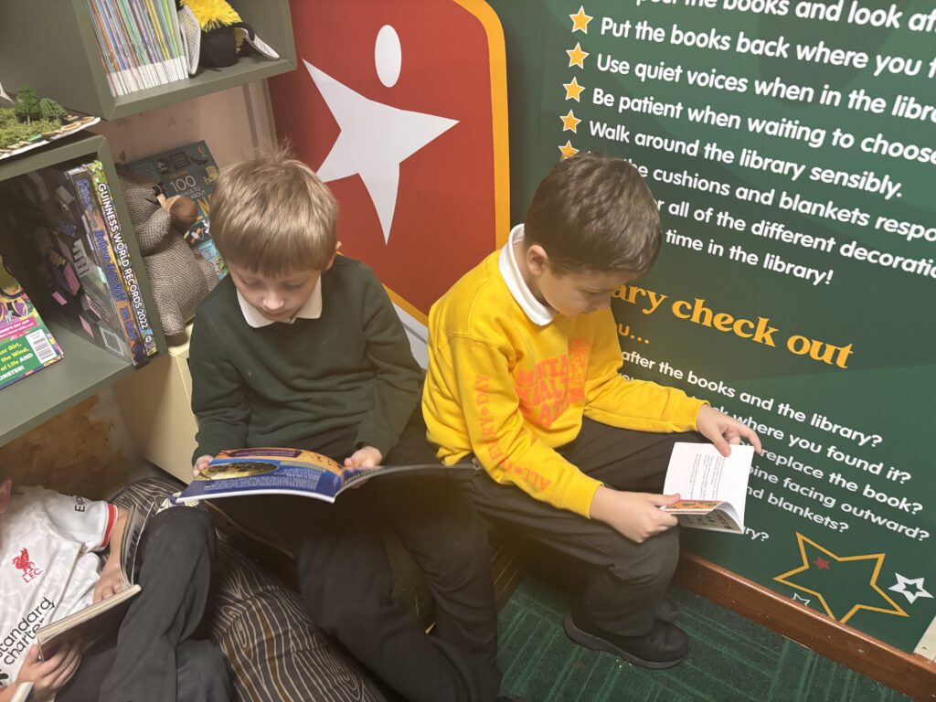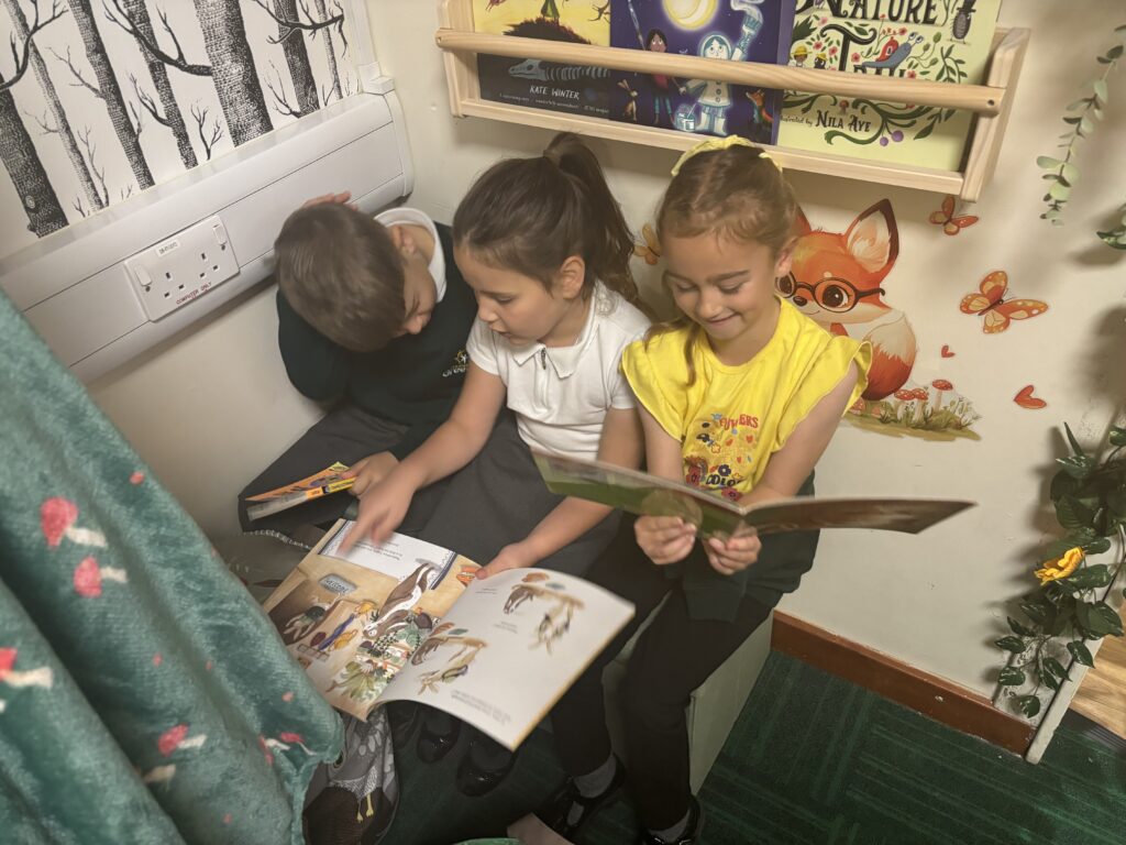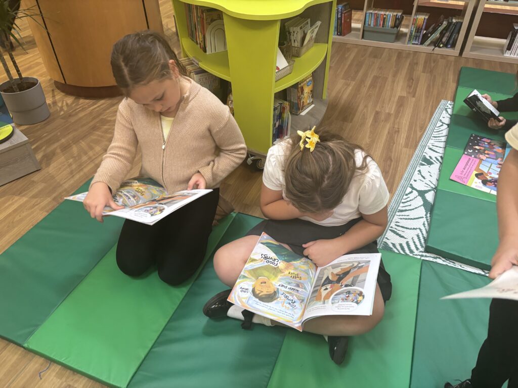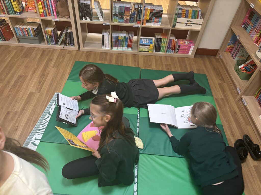 To mark the end of reading week, last Friday, Class 10 paid a little trip to our brand new school library. Once again, we were able to enjoy the beautiful surroundings, take a look at the books that interested us and listen to a lovely story. How lucky we are to have such a wonderful space in which to enjoy so many exciting reads!