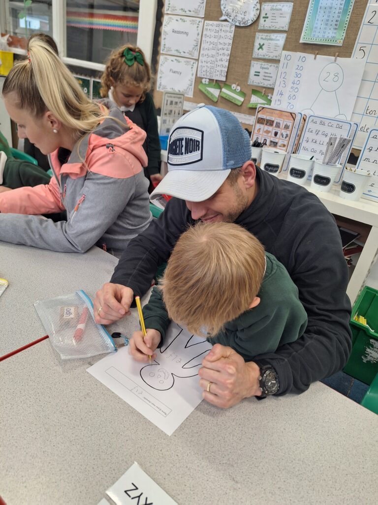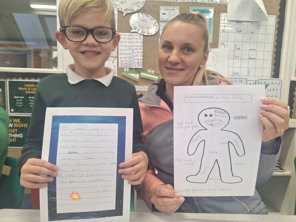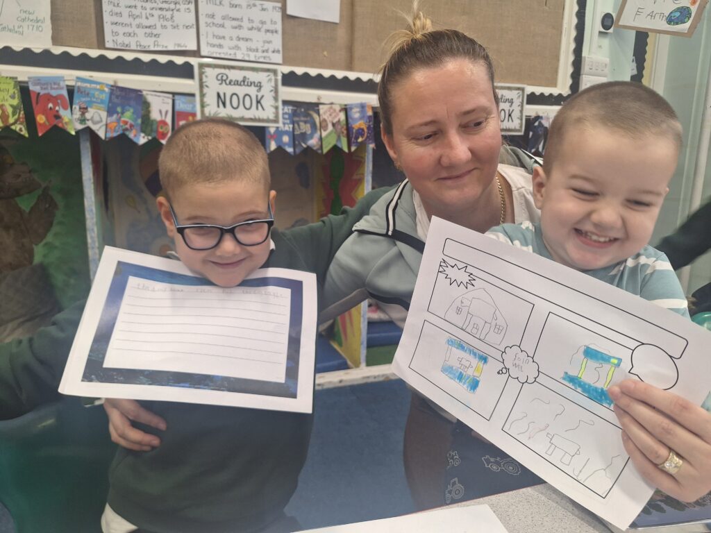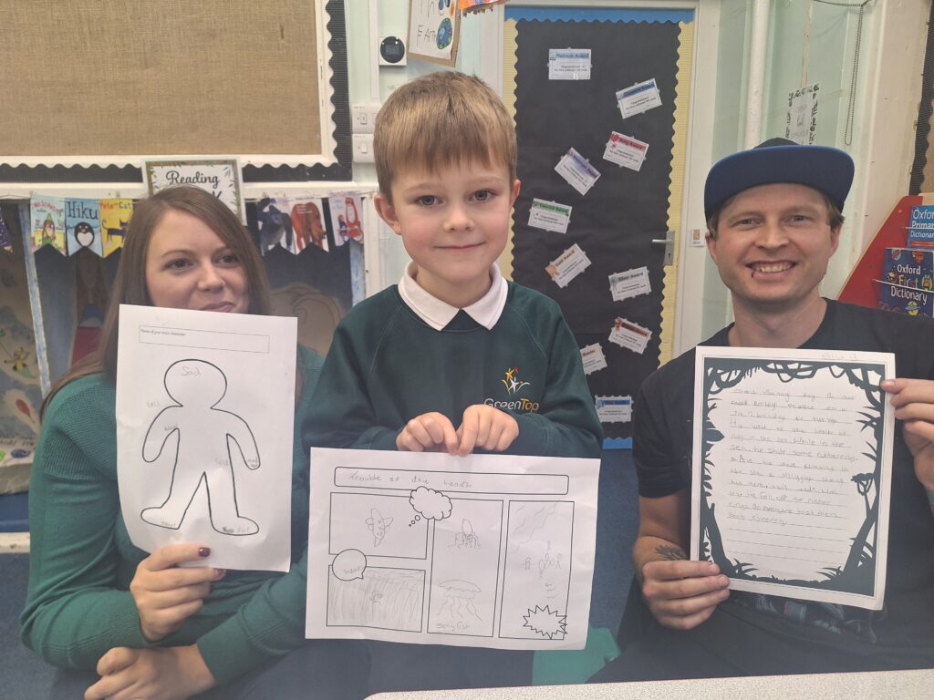 Thank you so much to all of the parents who came in today to support their children with writing a story. You created a character, did freeze frames, drew a comic strip story board and then wrote your story together! It was lovely to see and the children were so proud of their writing!