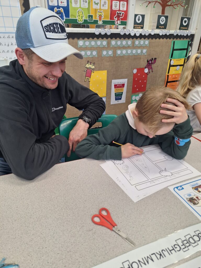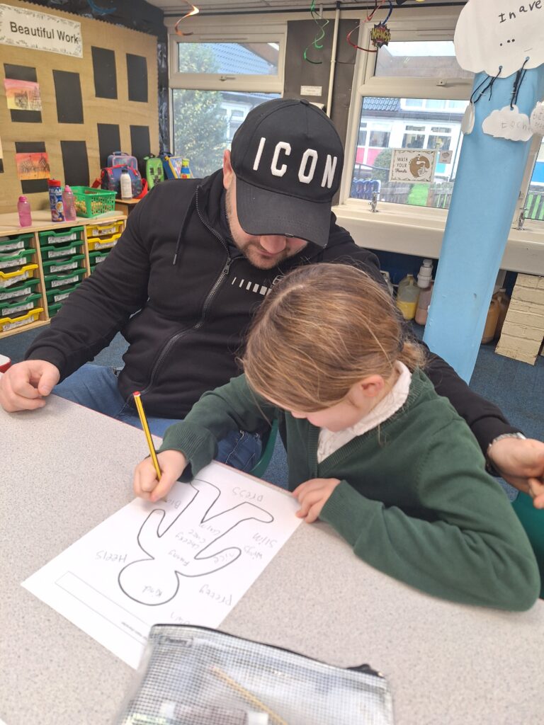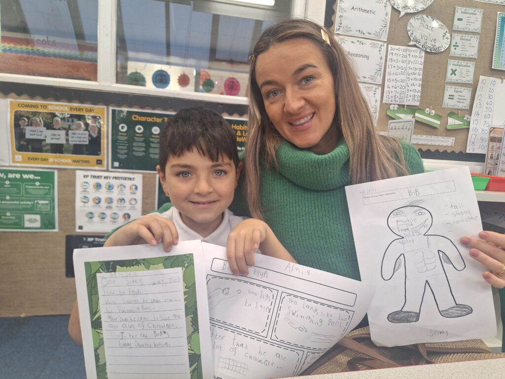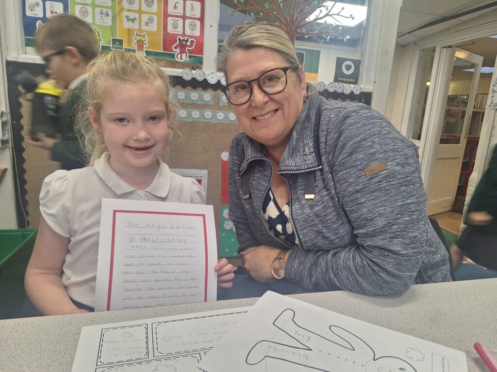 Thank you so much to all of the parents who came in today to support their children with writing a story. You created a character, did freeze frames, drew a comic strip story board and then wrote your story together! It was lovely to see and the children were so proud of their writing!