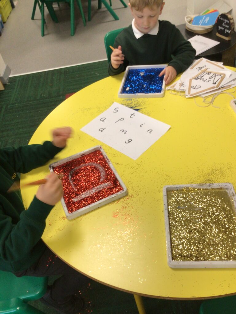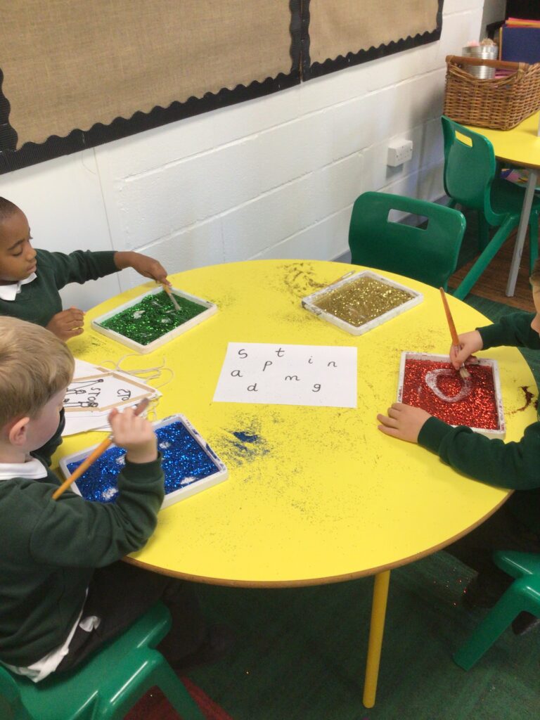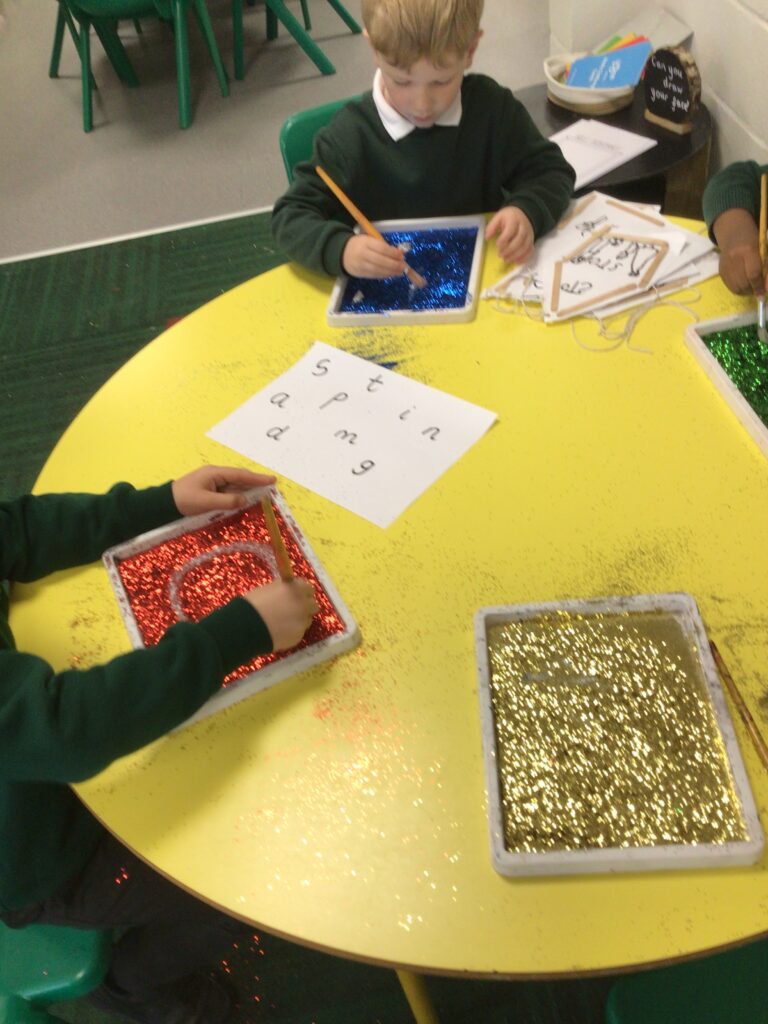 It was lovely to see these guys using the glitter to practise the sounds that we have been learning in our phonics sessions.