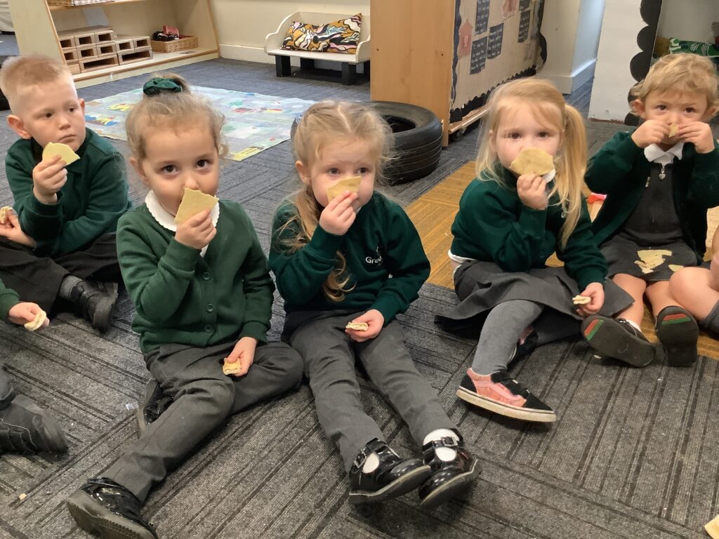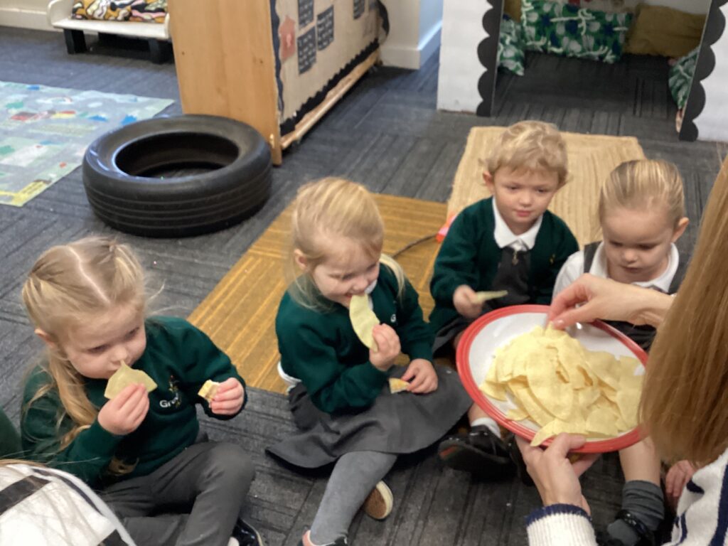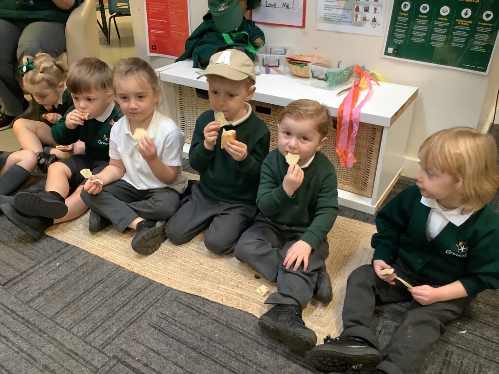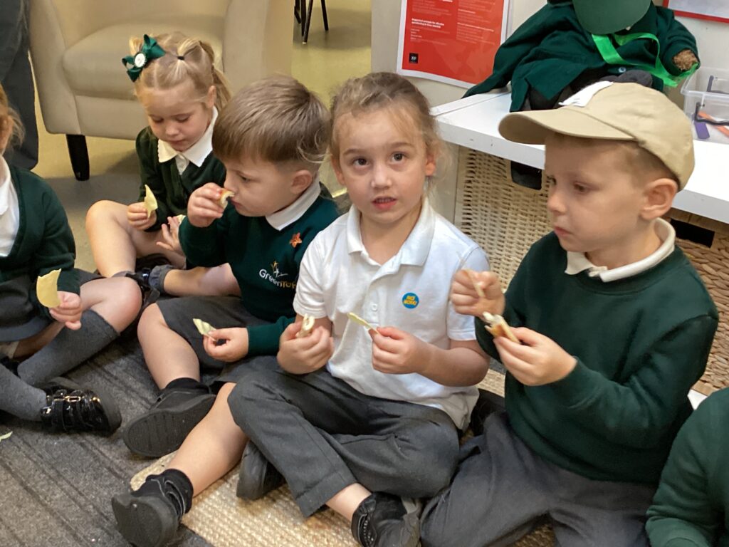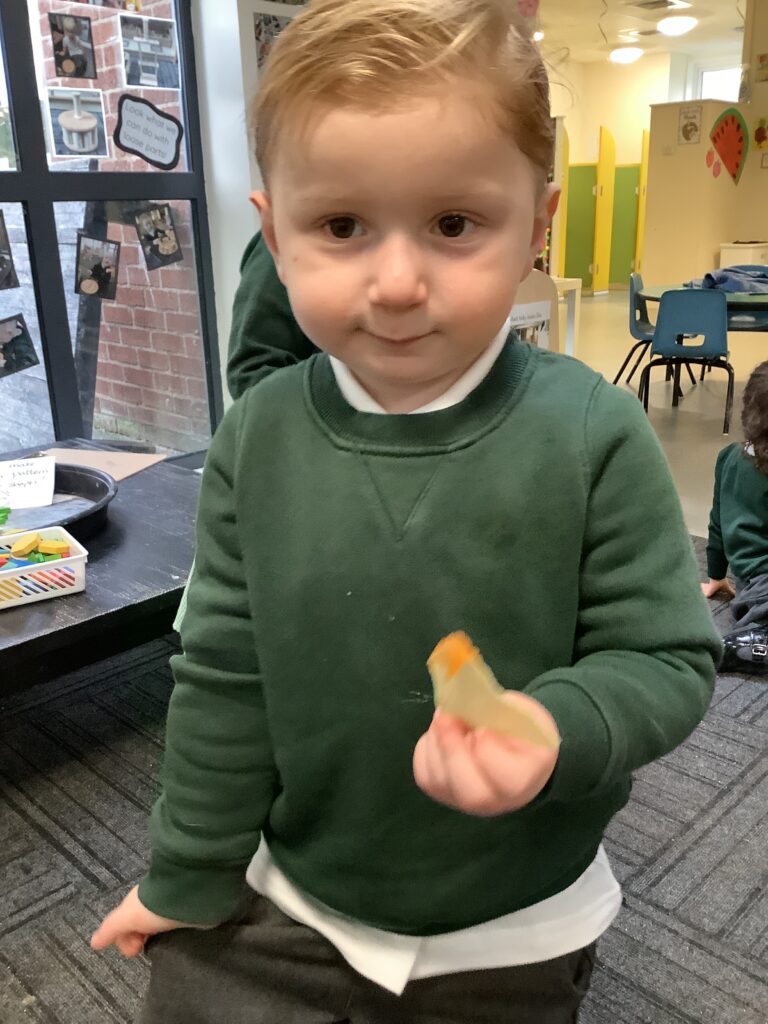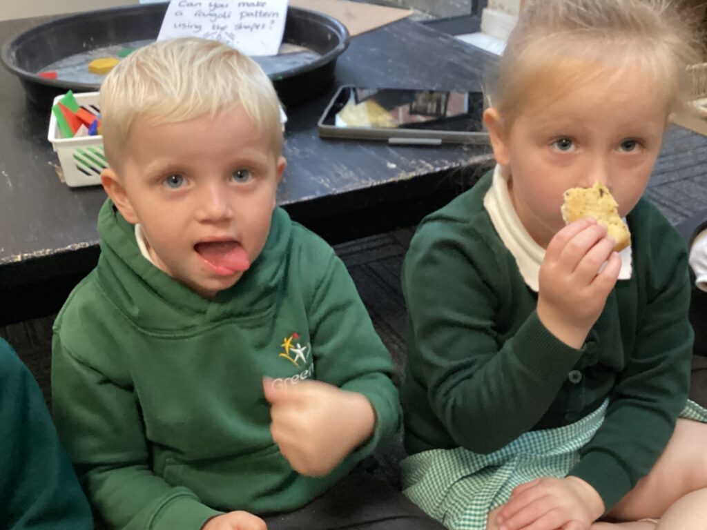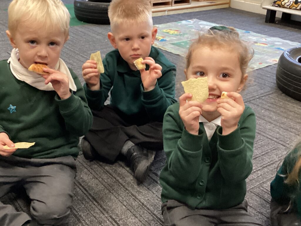 We then used our senses to smell, touch and taste some Indian foods. Some children showed courage by trying something new, you can see by their faces if they enjoyed the taste or not. Mango Chutney was a big hit with many children and they enjoyed dipping naan breads and popadoms into it.