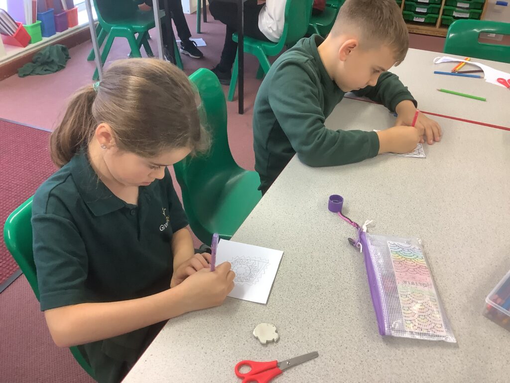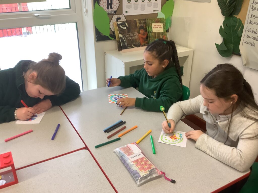 As part of our faith day today, we have been working hard on creating some beautiful Rangoli patterns and designs linked to Diwali!