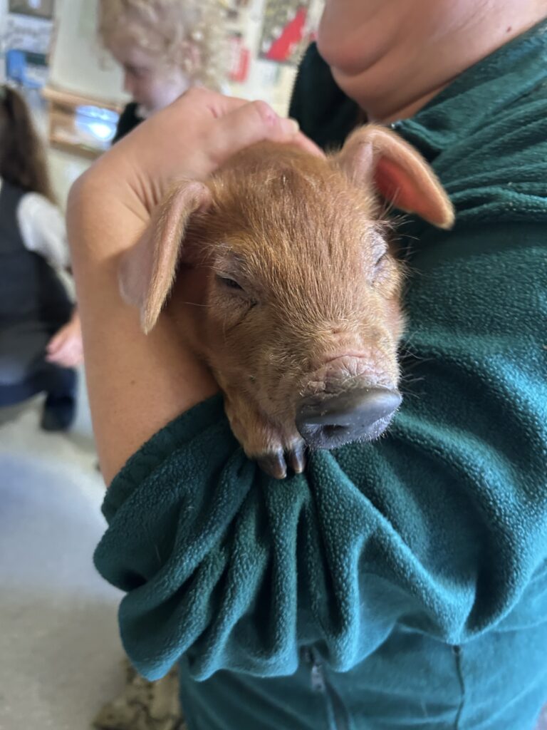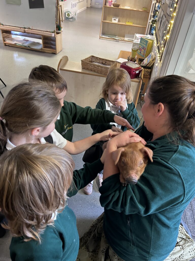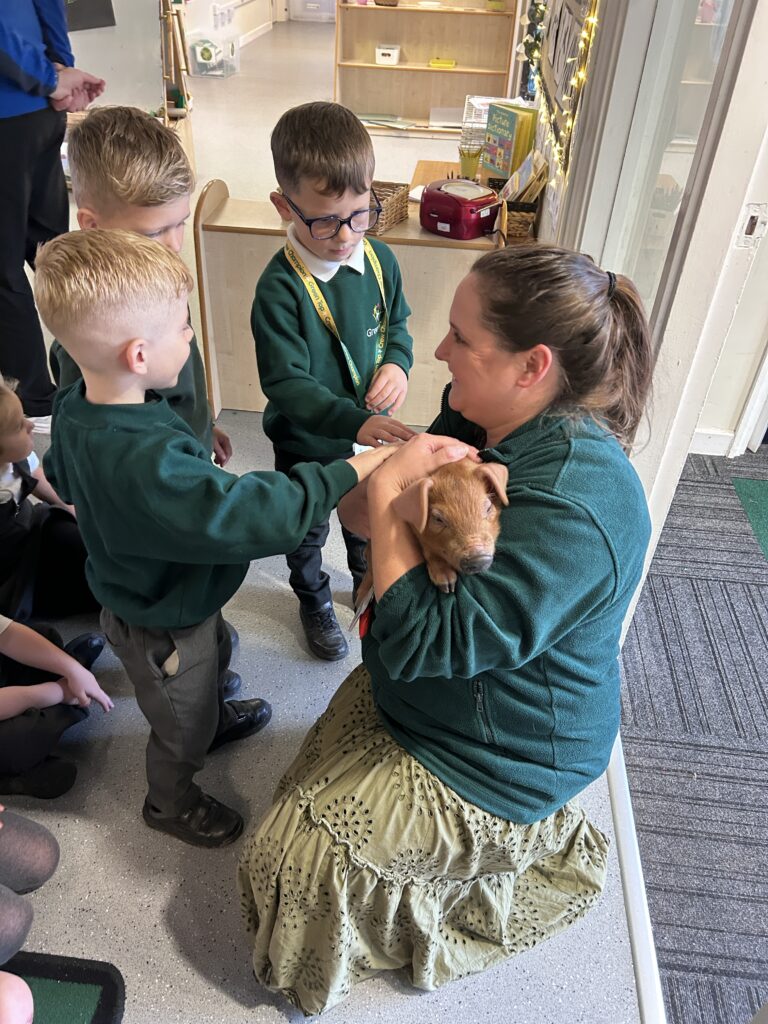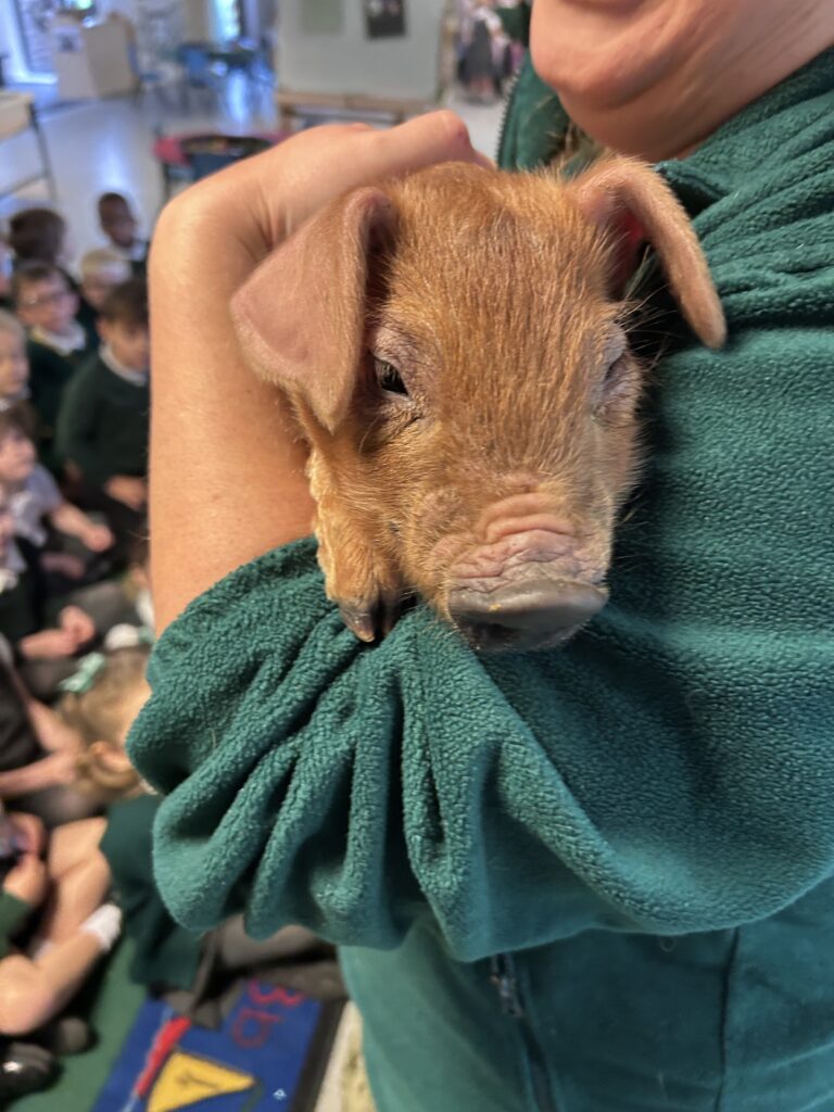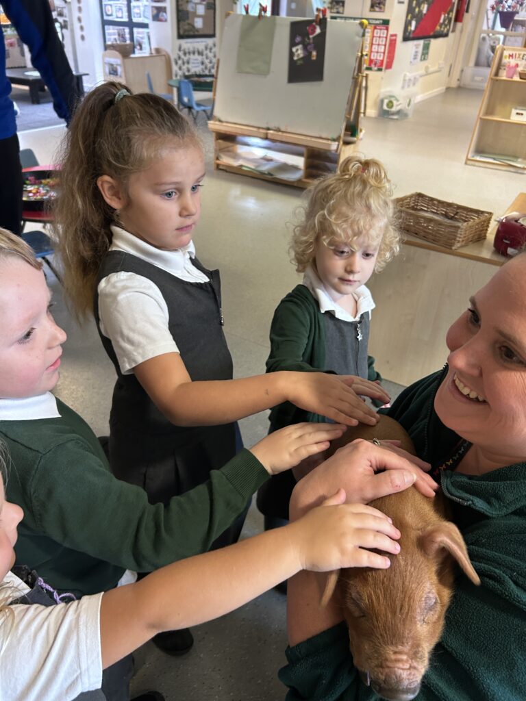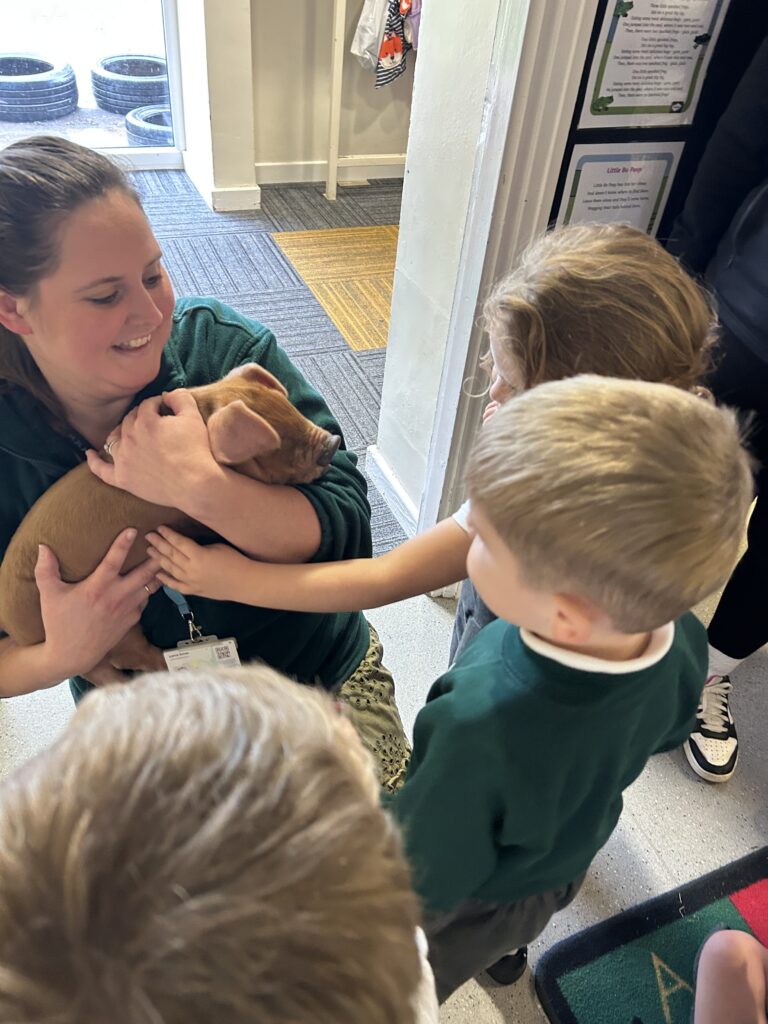 A huge thank you to nursery for allowing us down yesterday to come and see the two piglets that Miss Myers kindly brought in from her farm to enhance the nursery children’s learning this week. The children showed great care for the Pickles’s and enjoyed spending time with them and giving them a little stroke. The little piglet was so comfortable he even took a little nap.