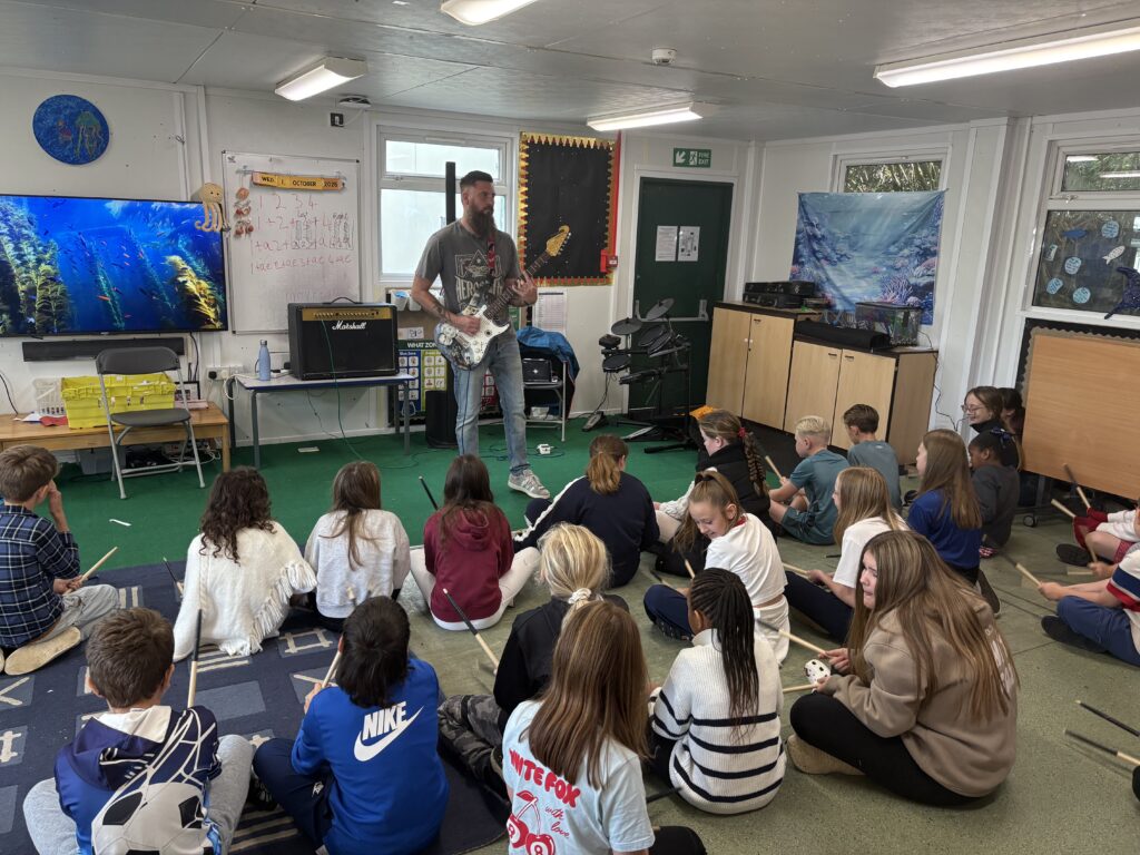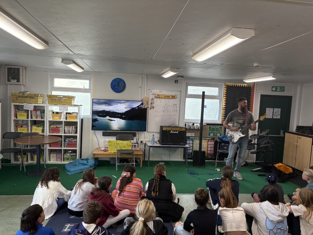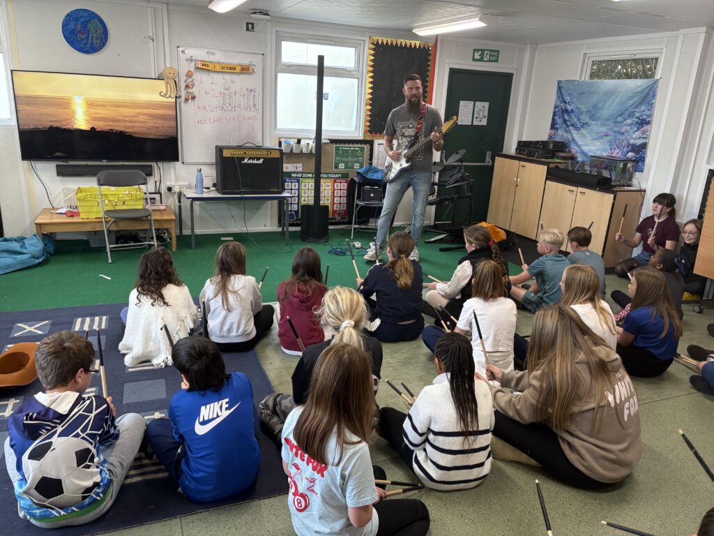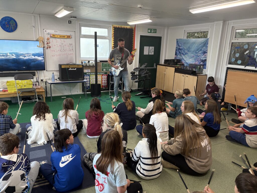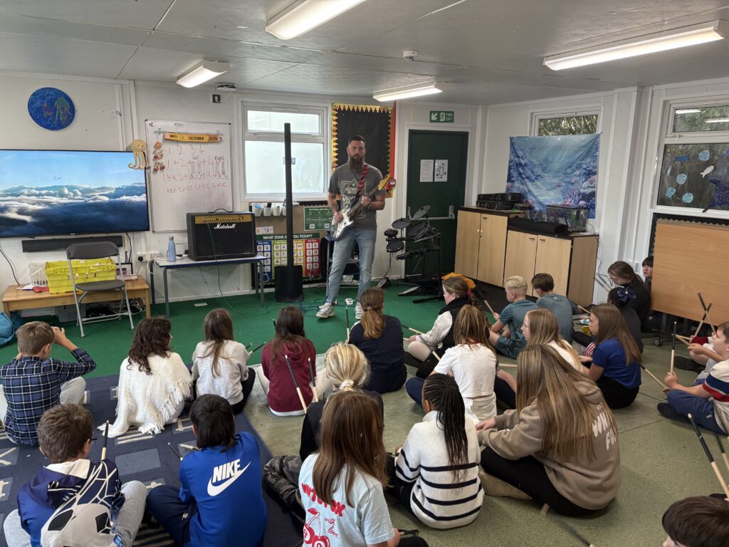 Y6 Rock & Roll 3rd October 2025Tom Ambler Yesterday, Y6 had great fun listening to Mr Pickles play some classic rock & roll songs and drumming along to the music!