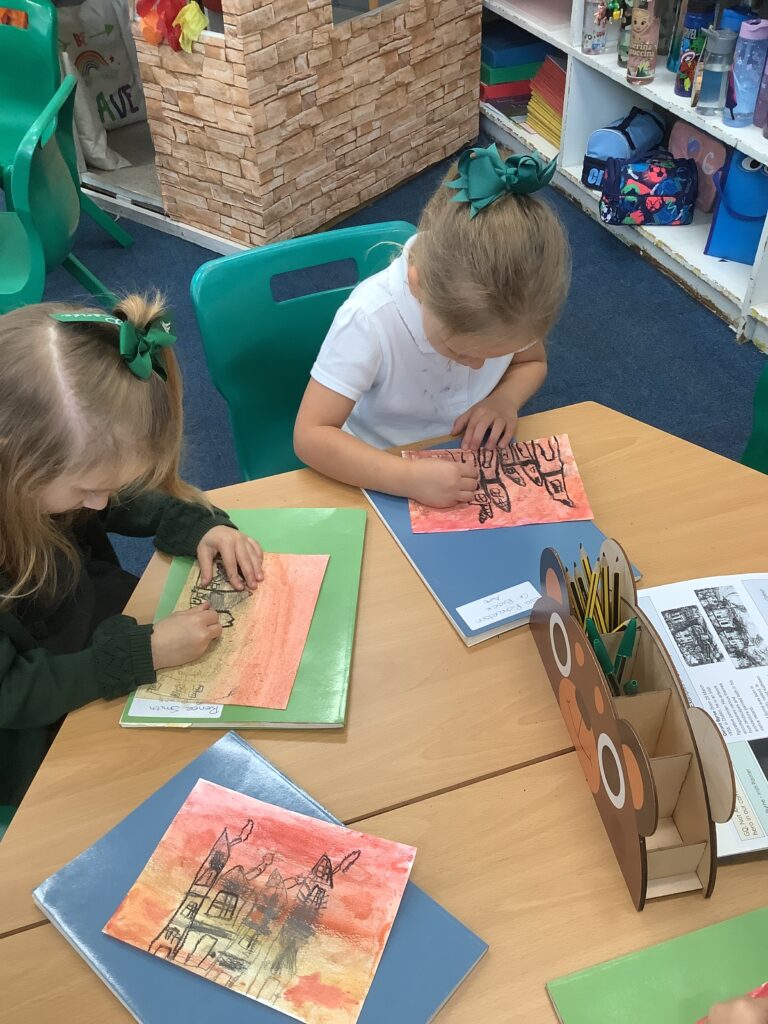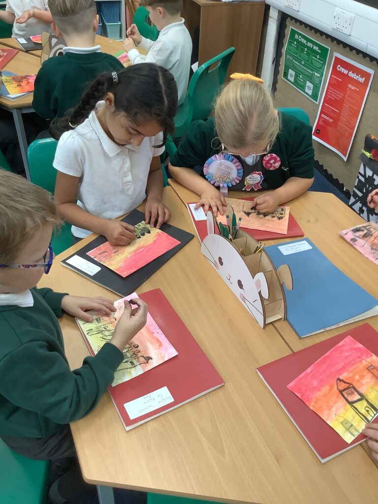 Below is the year 1 children finishing their art work for The Great Fire Of London, well done everyone your work is amazing!!