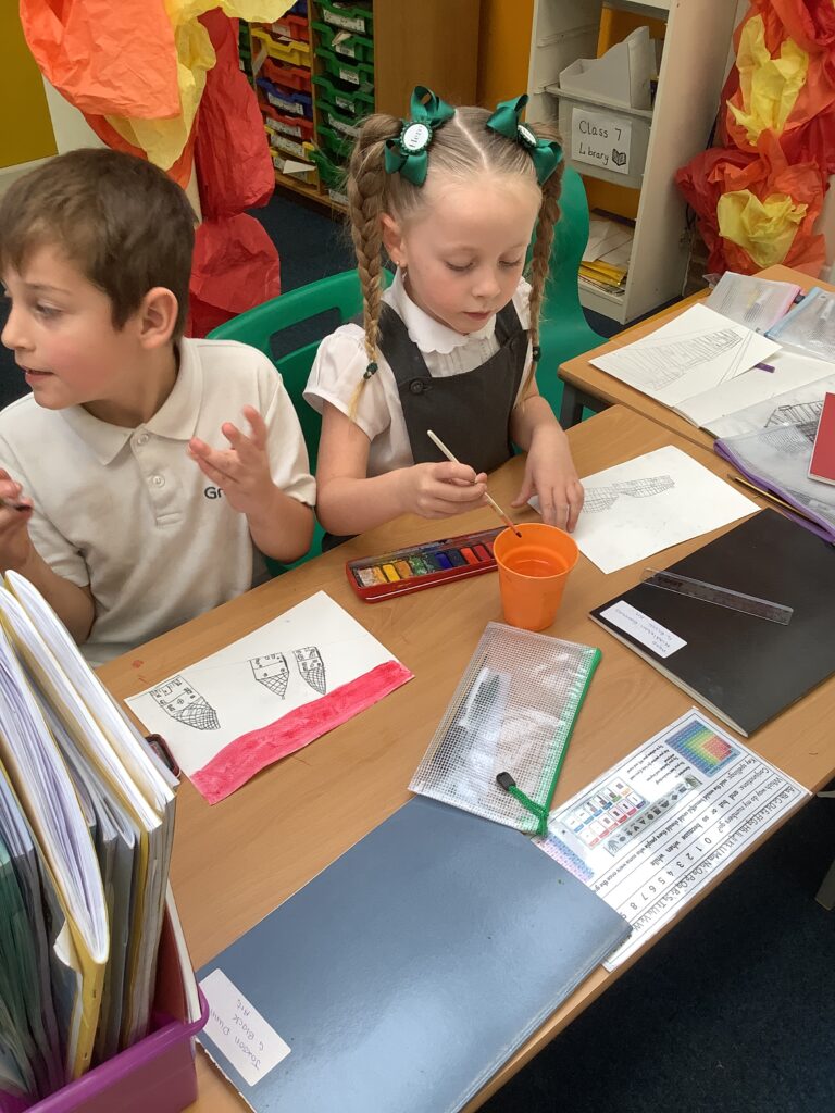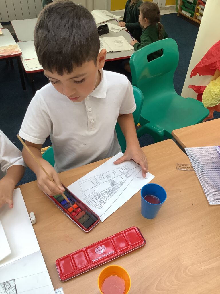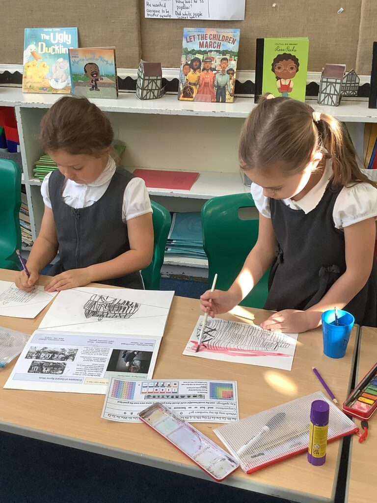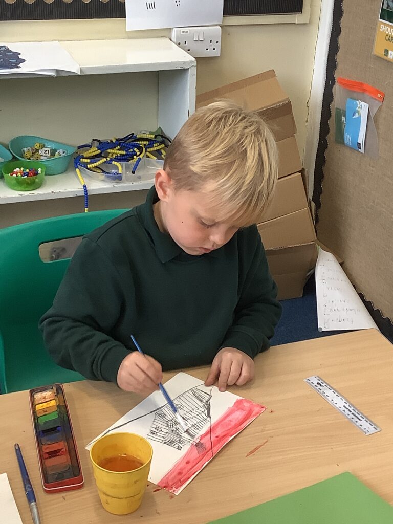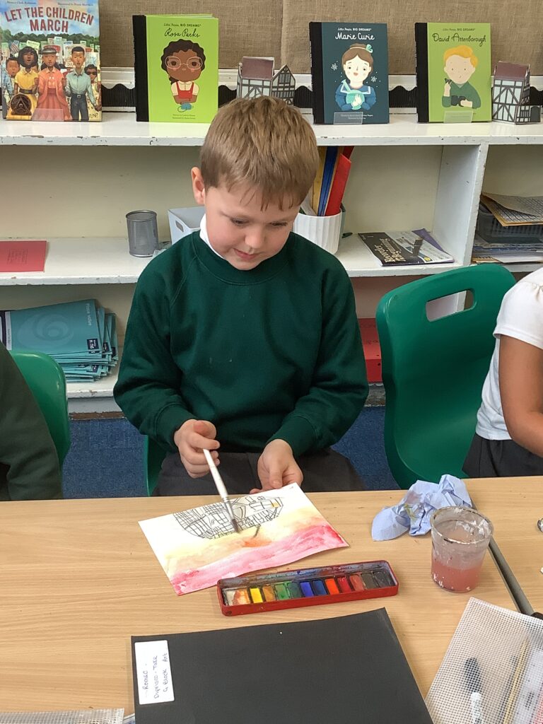 Year 2 G Block Art 7th October 2025June Miller Below is some examples of the children’s work linked to The Great Fire Of London. can’t wait to see the finished pieces.