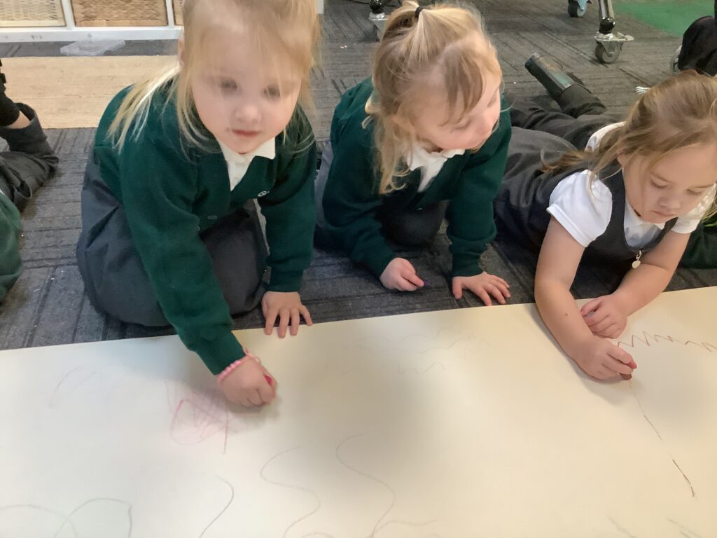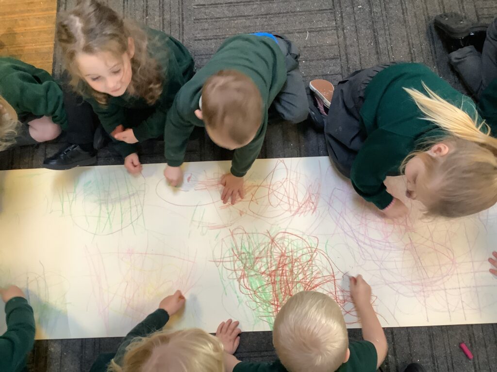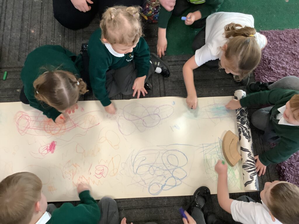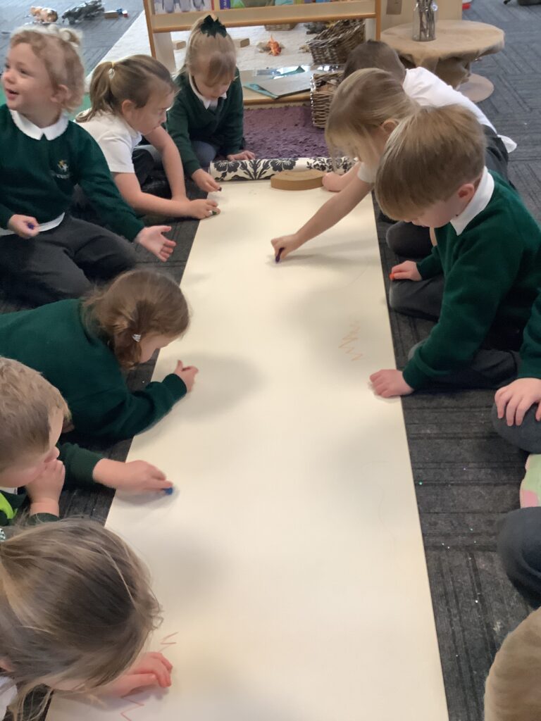 This afternoon we have been working on our fine motor skills to help build our muscles ready for pre writing skills. The children really enjoyed the opportunity to make different patterns on a large piece of paper. They loved it so much they’ve asked to do it again tomorrow!