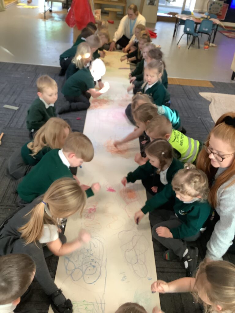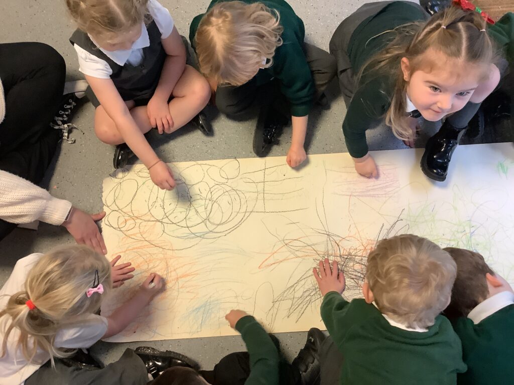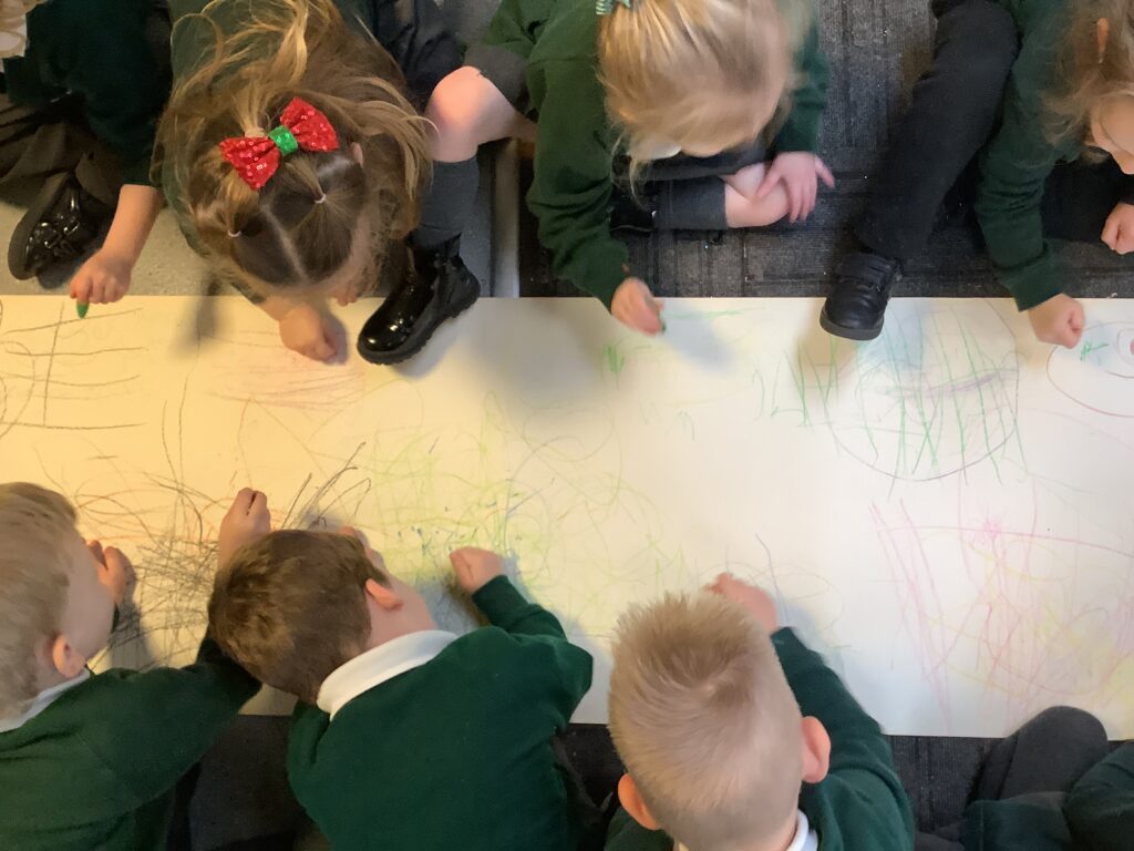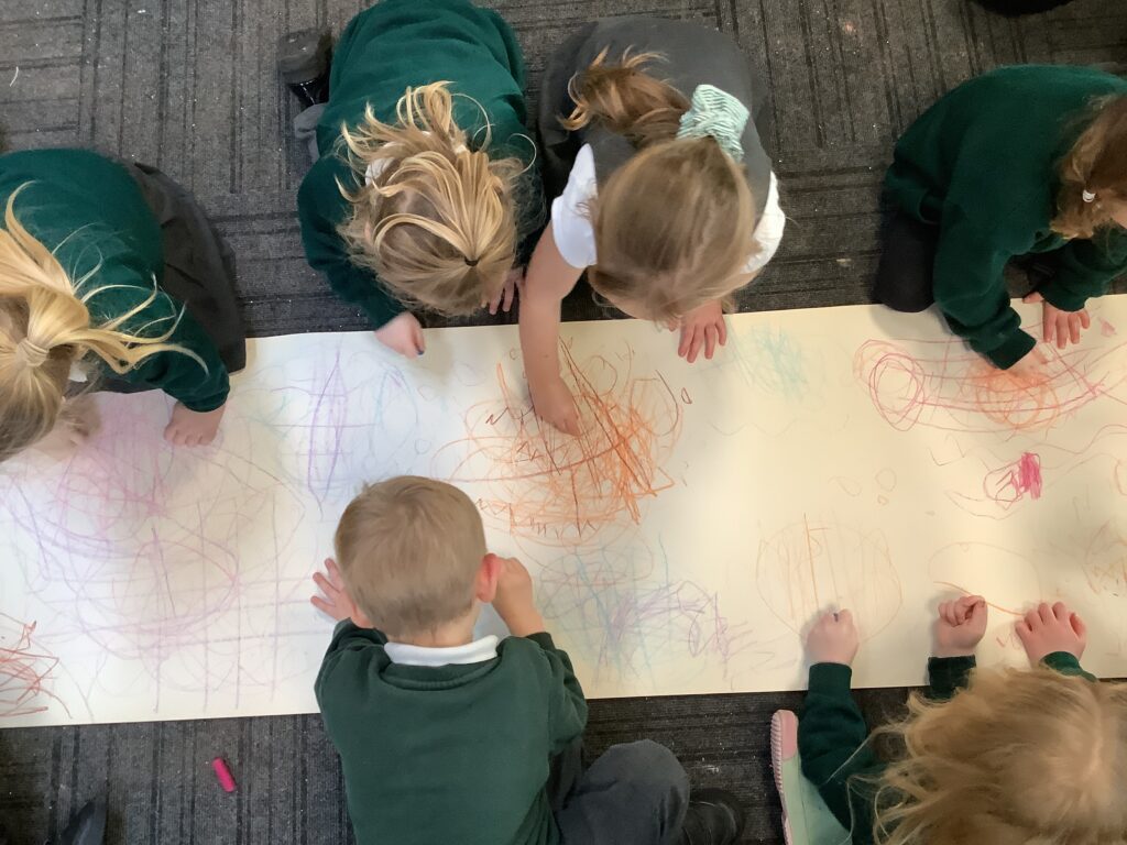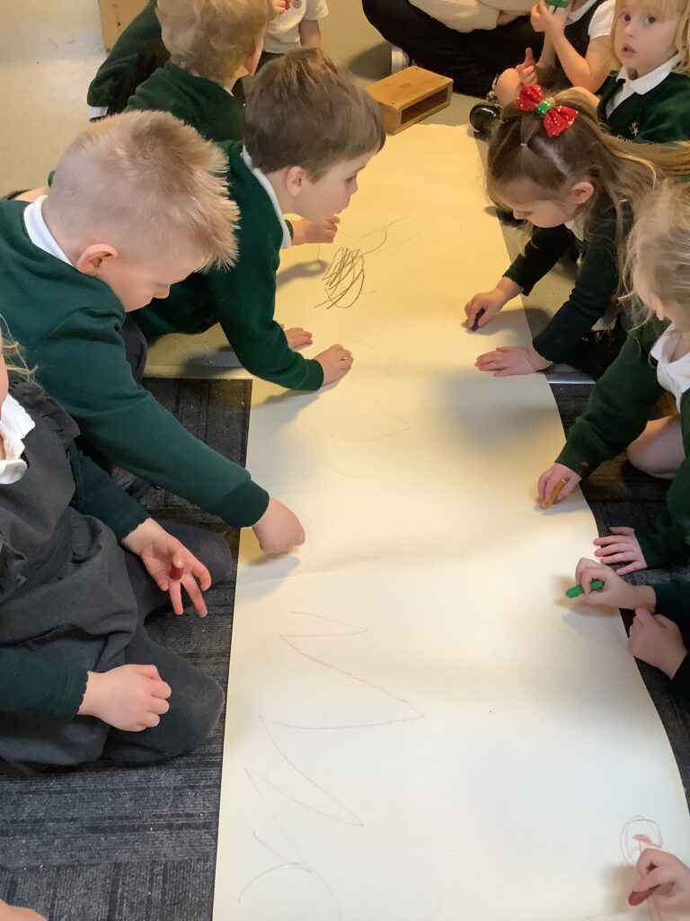 This afternoon we have been working on our fine motor skills to help build our muscles ready for pre writing skills. The children really enjoyed the opportunity to make different patterns on a large piece of paper. They loved it so much they’ve asked to do it again tomorrow!