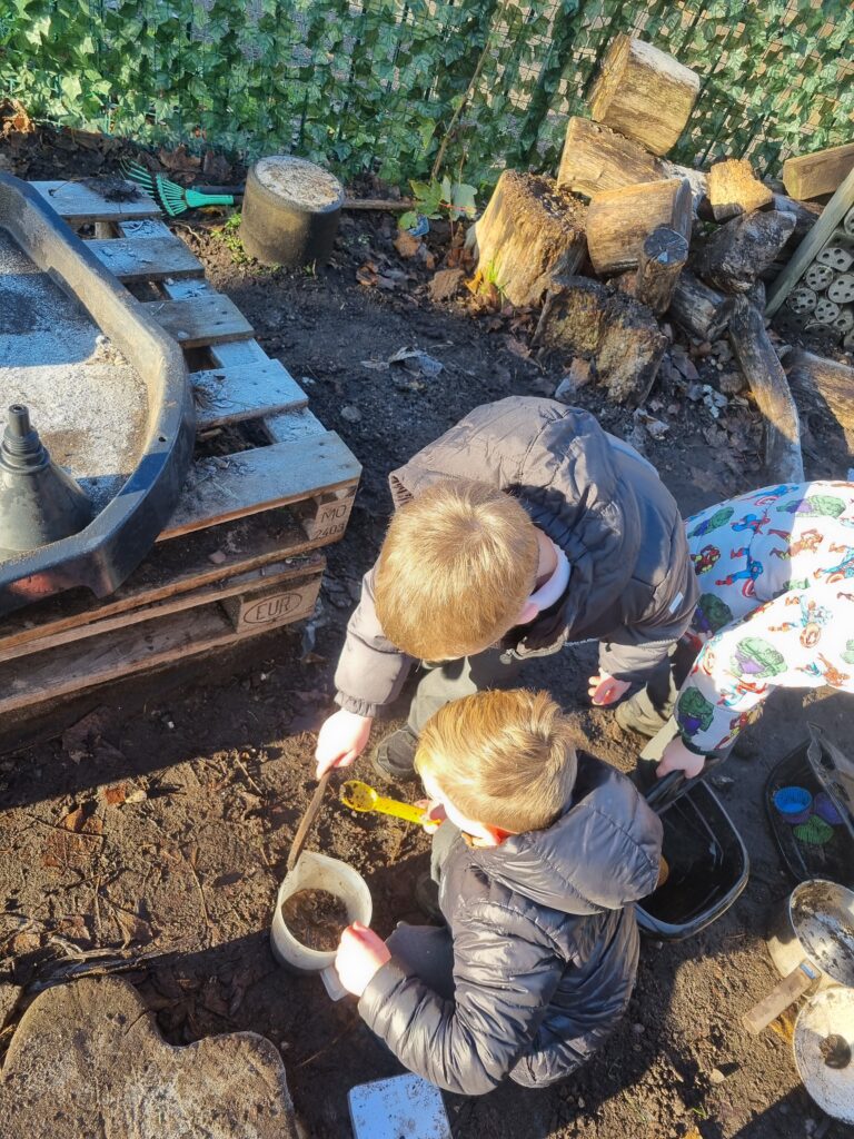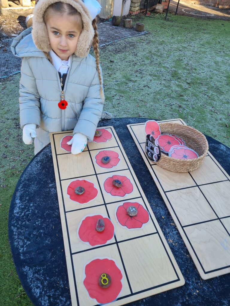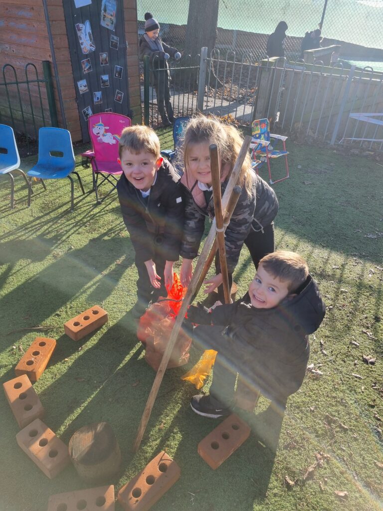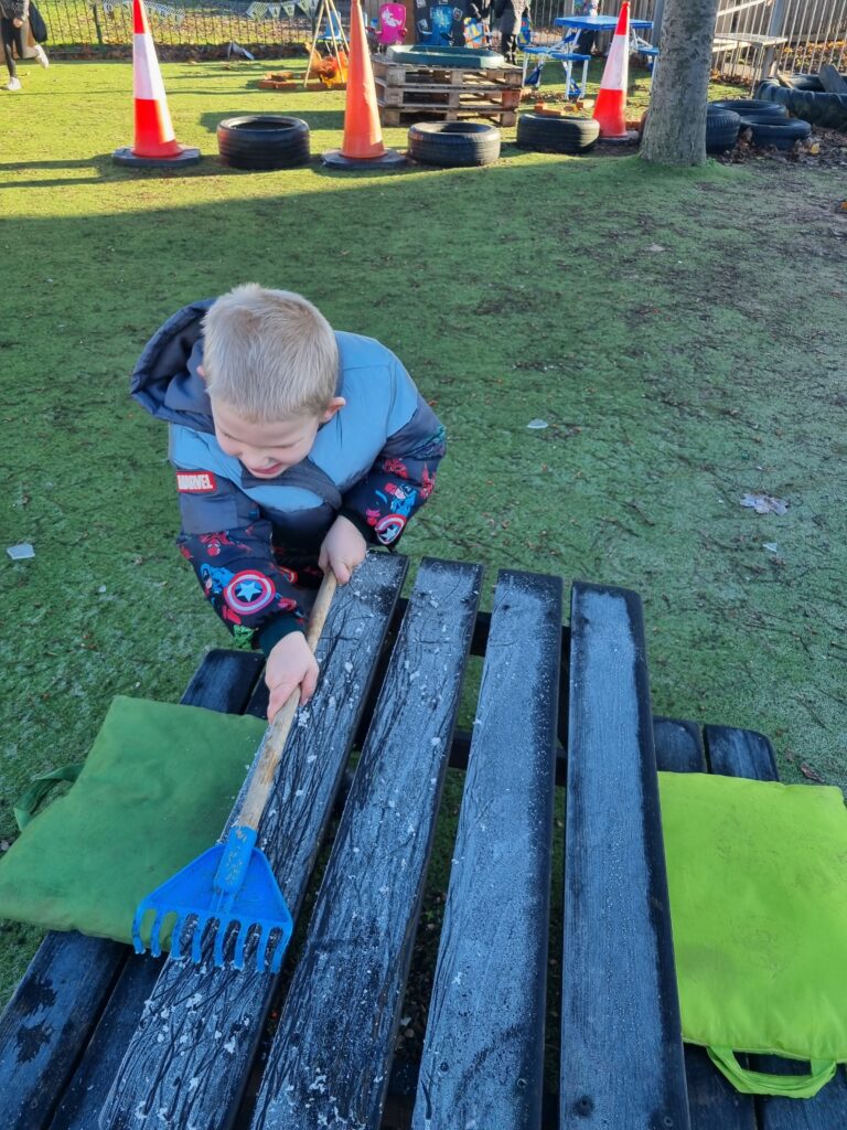 The cold weather did not stop us on Friday! The children in class 3 had a fantastic time continuing their learning outdoors on Friday! Storm and Halle enjoyed practicing their number bonds, ordering numbers and matching the number to a quantity. Elijah had lots of fun mark making in the ice using a rake and the mud kitchen cafe was open for business! Frankie , Lenny and Henry created a beautiful fire for their campsite and couldn’t wait to get warm!