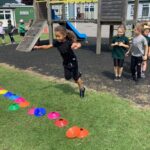 This afternoon we learnt how to do standing long jump starting with both feet together. It was tricker than we thought!