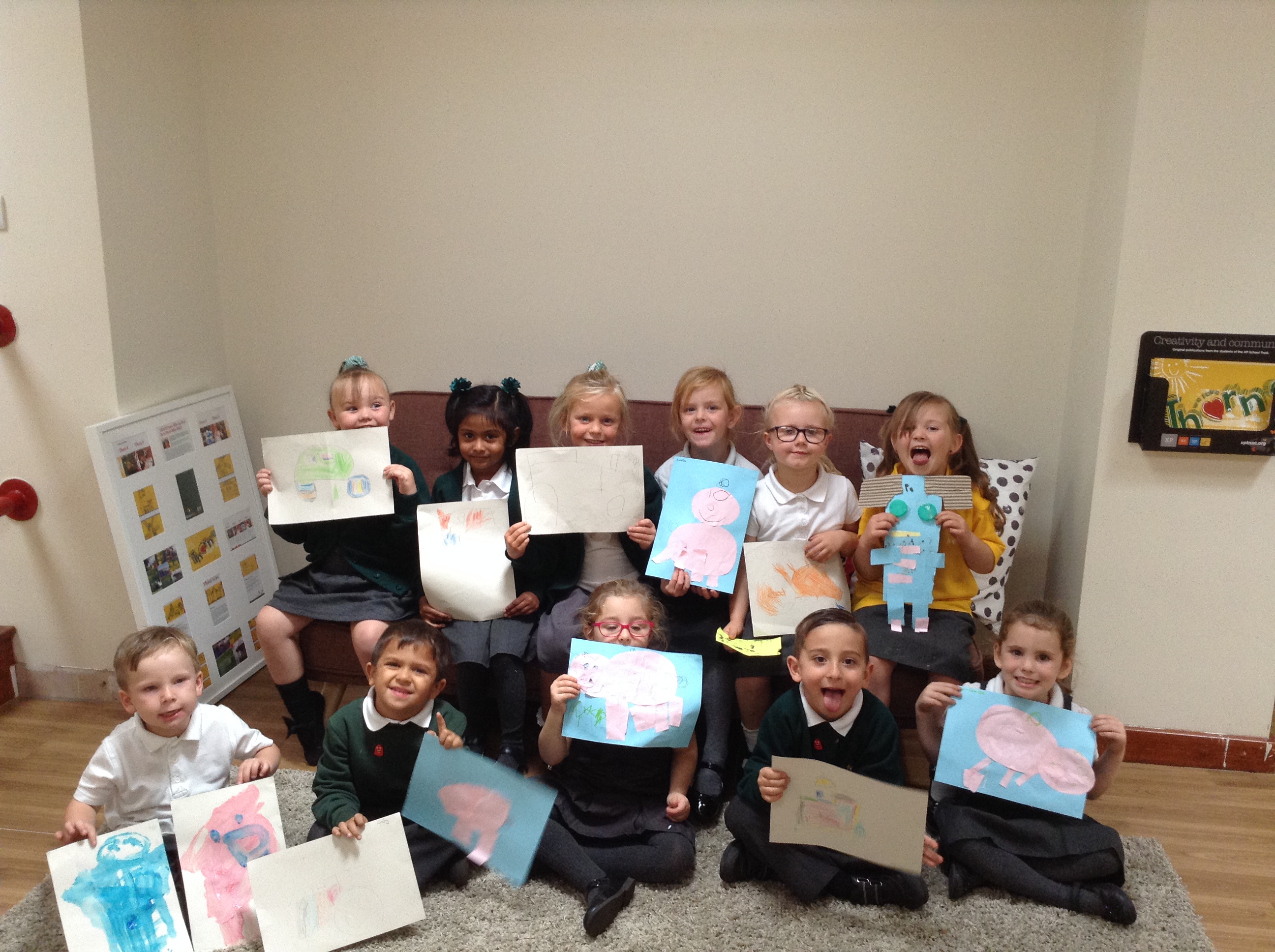 This week the children have amazed us with their wonderful independent craft work. They are loving the farm topic and it really shows in their work. It ranges from paper pigs, painted pigs, to drawn tractors and even a paper farmer. Well done class 3 and 4.
